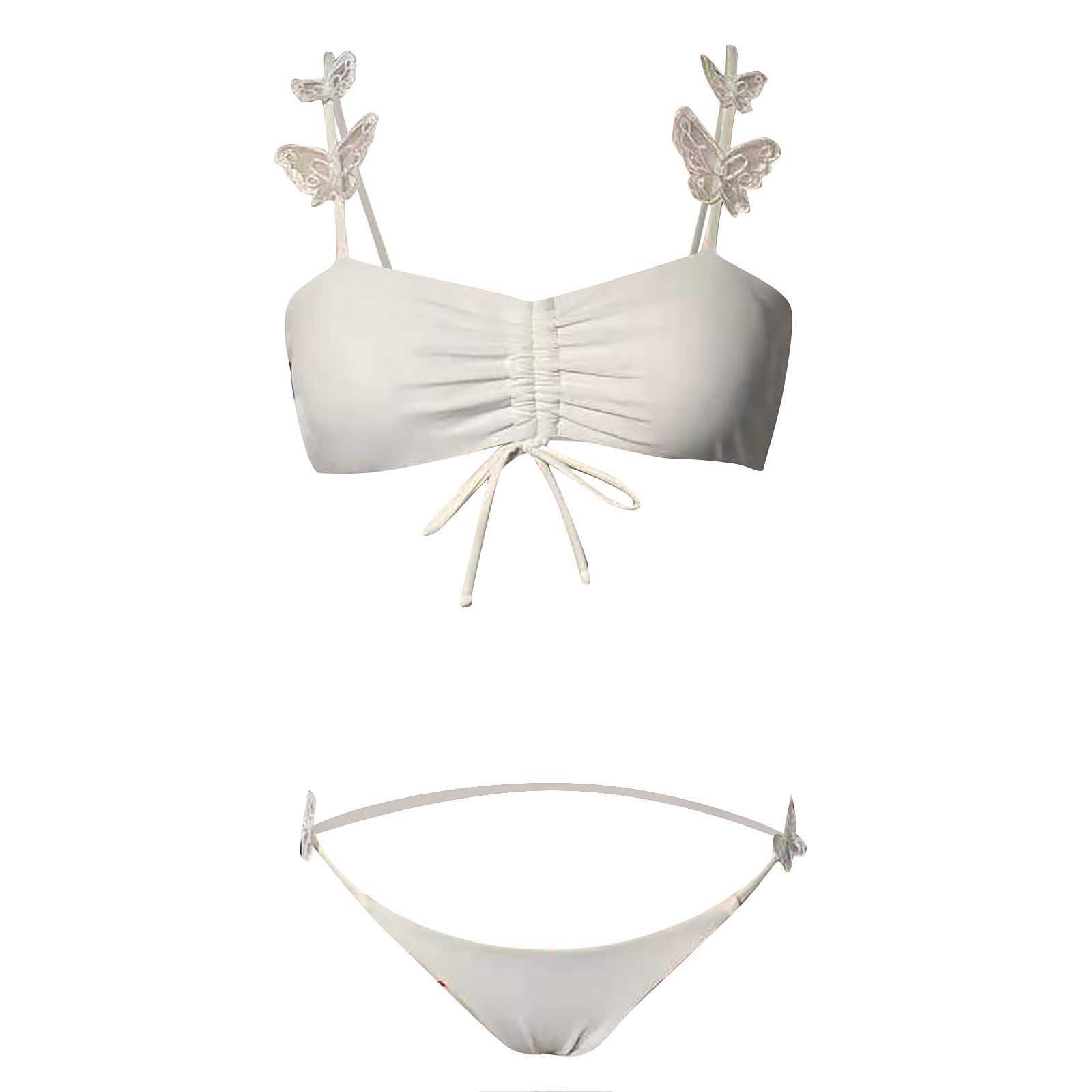 Женский Бралетт сексуальный сплошной Цвет Бабочка Холтер раздельный купальник бикини