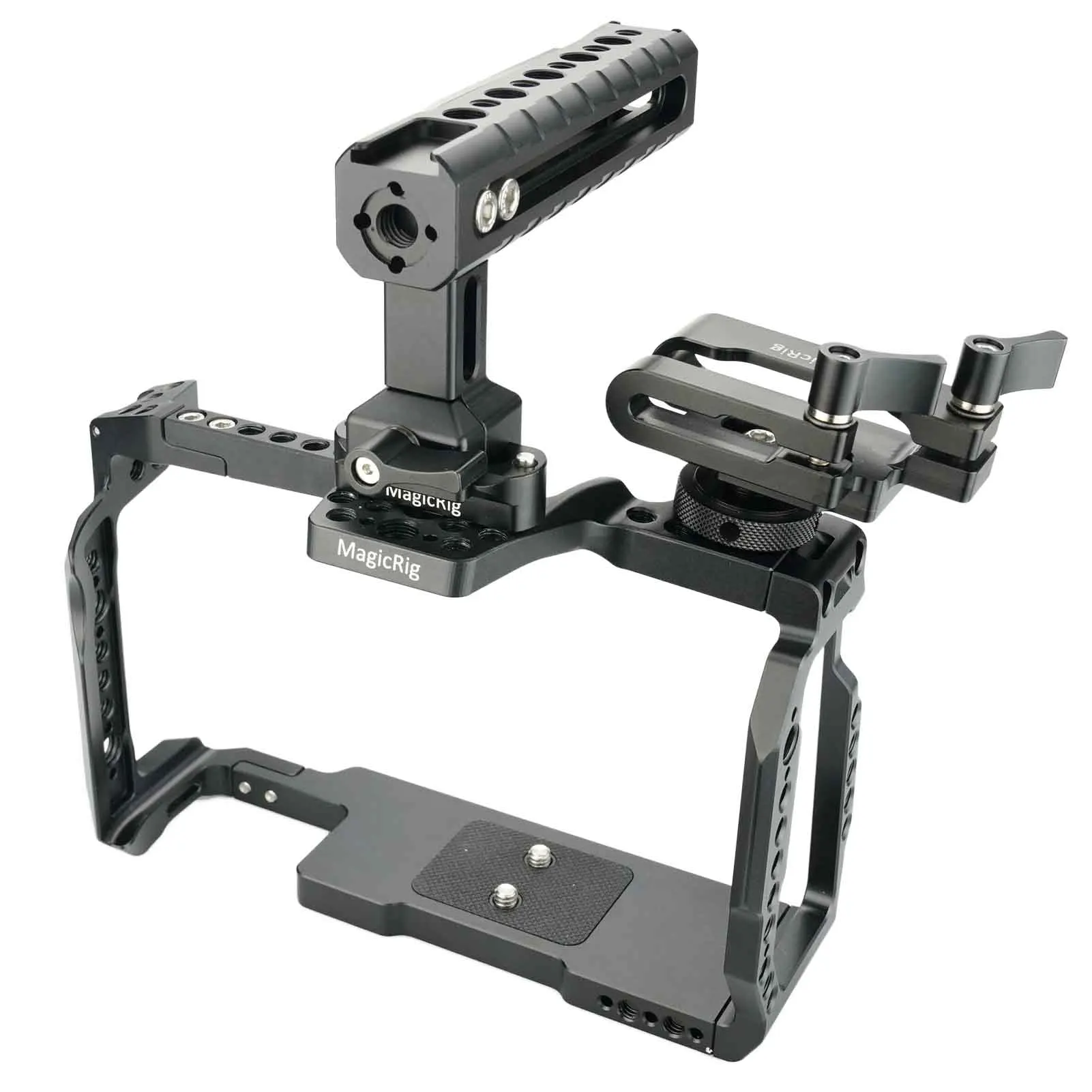 3. Несколько монтажных интерфейсов. Клетка оснащена несколькими резьбовыми отверстиями 1/4 ''и отверстиями ARRI, вы можете установить больше аксессуаров, таких как мониторы, микрофоны, вспышки, ручки и т. Д.