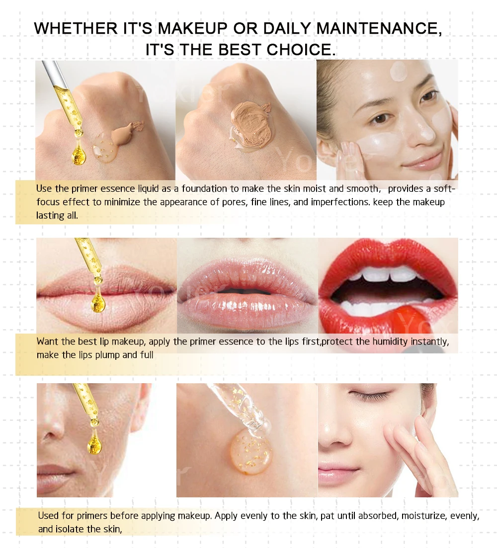 Отзывы о Yoxier Face Serum Makeup Primer Moisturizing Repair Anti-Aging Nourish Oil Control Whitening Gold Hyaluronic Acid Skin Care 3Pcs - купить по