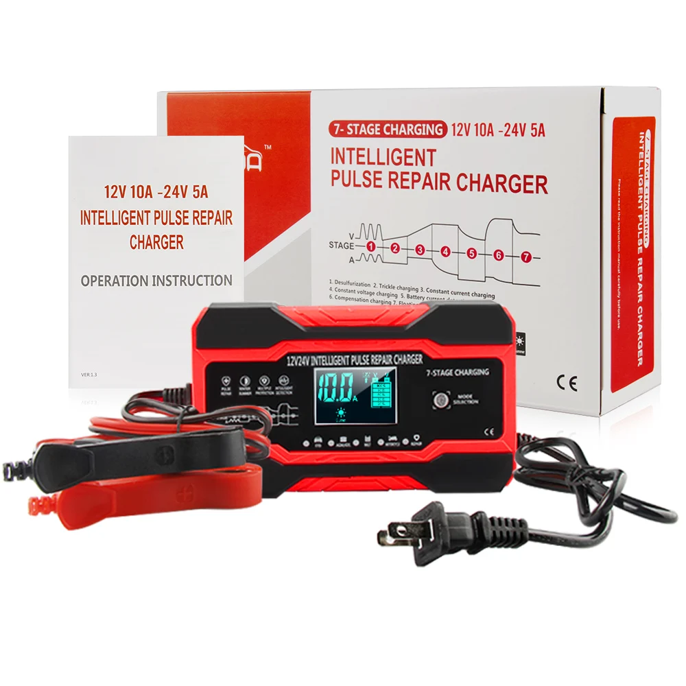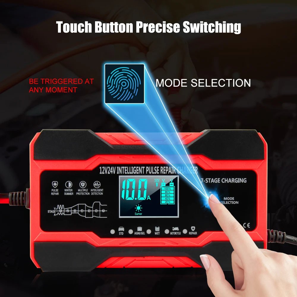Автомобильный Батарея Зарядное устройство 12/24V 10A 5A сенсорный Экран импульсный ремонт ЖК-дисплей Батарея Зарядное устройство для автомобиля мотоцикла свинцово-кислотный Батарея Agm гель мокрый