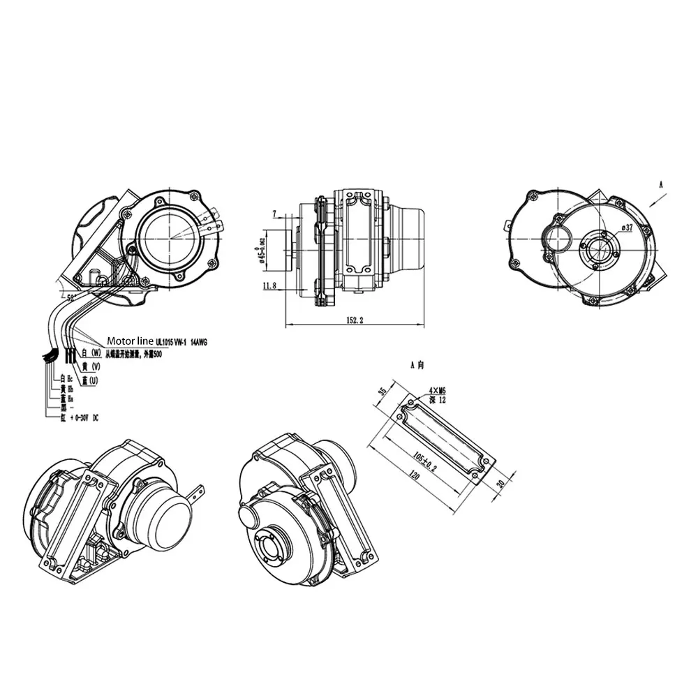 Направление работы: Когда двигатель соединяется с линиями U,V,W и холла, соответствующими способу соединения, обращенным к концу выдвижения вала в плоском положении, вращение по часовой стрелке.