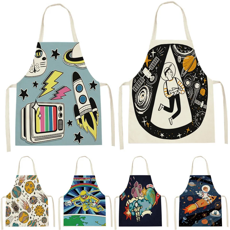 1 шт., фартук с космическим космонавтом, космическим кораблем, Дамский слюнявчик для взрослых, домашняя кухня, кофейня, чистящий фартук, нагрудник