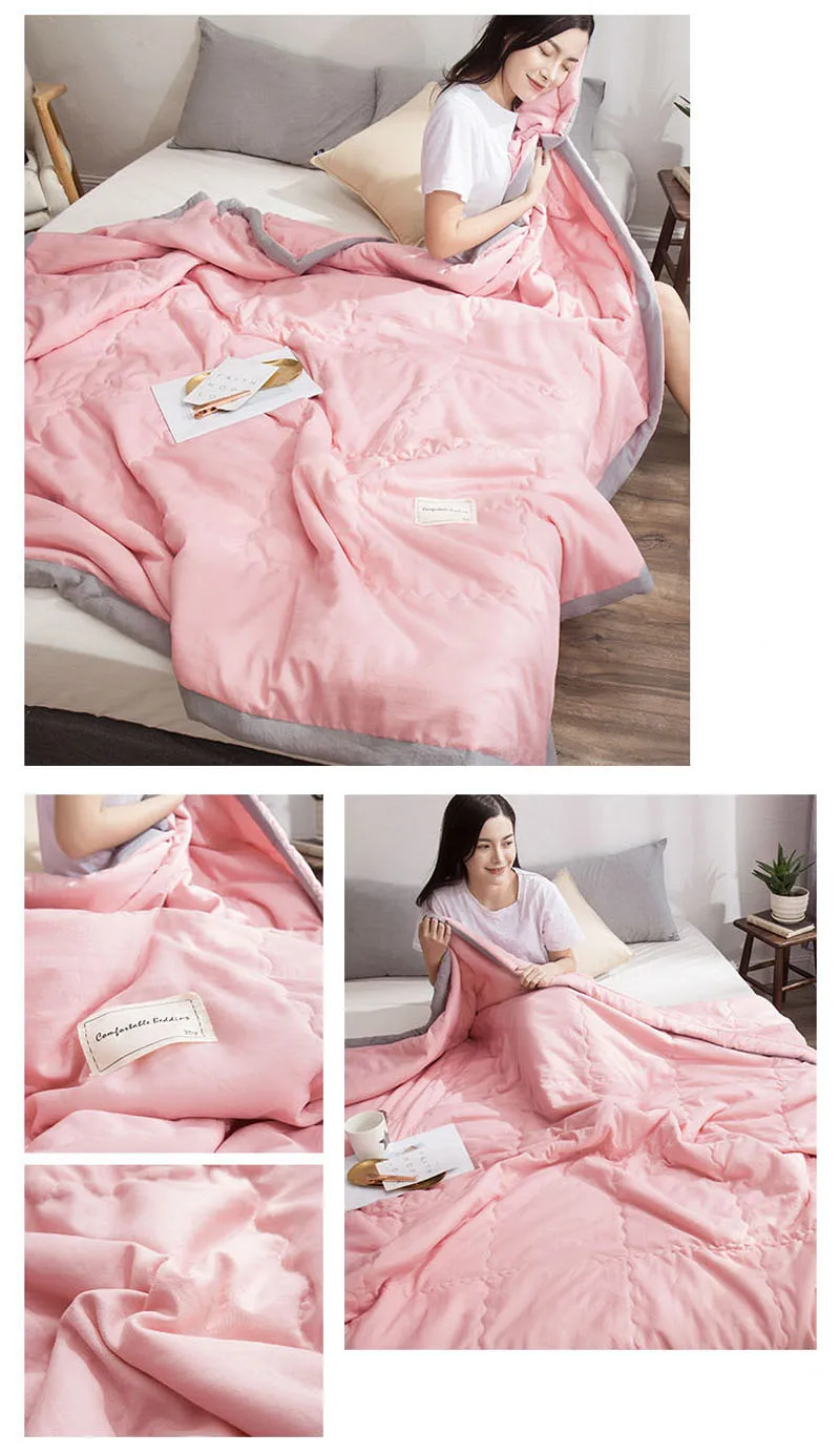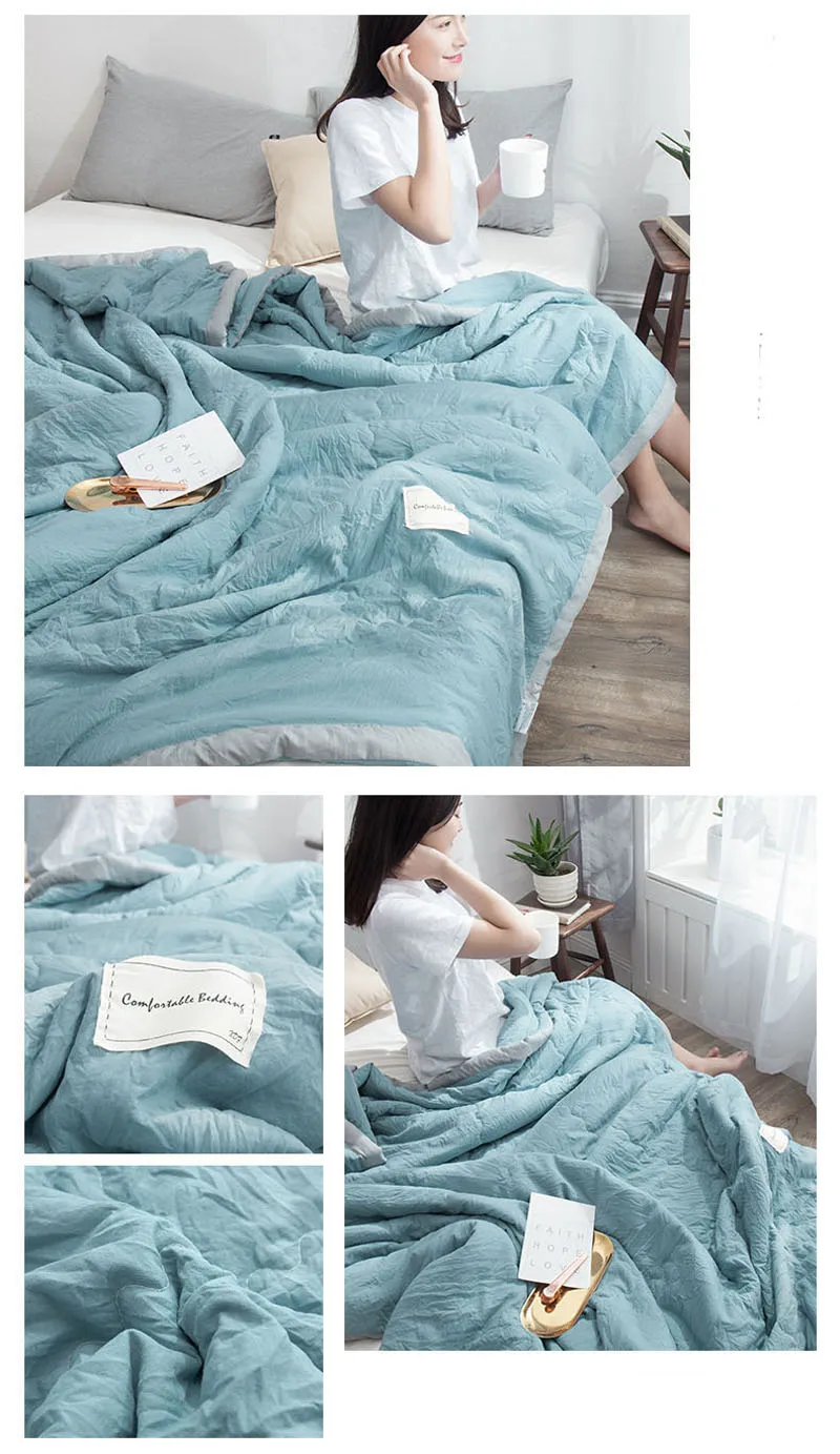 Japan Thin Quilt Grey Blue Bedspread for Double Queen King Bed Air Condition Comforter Blanket for Bed Plaid Bed Cover Coverlet