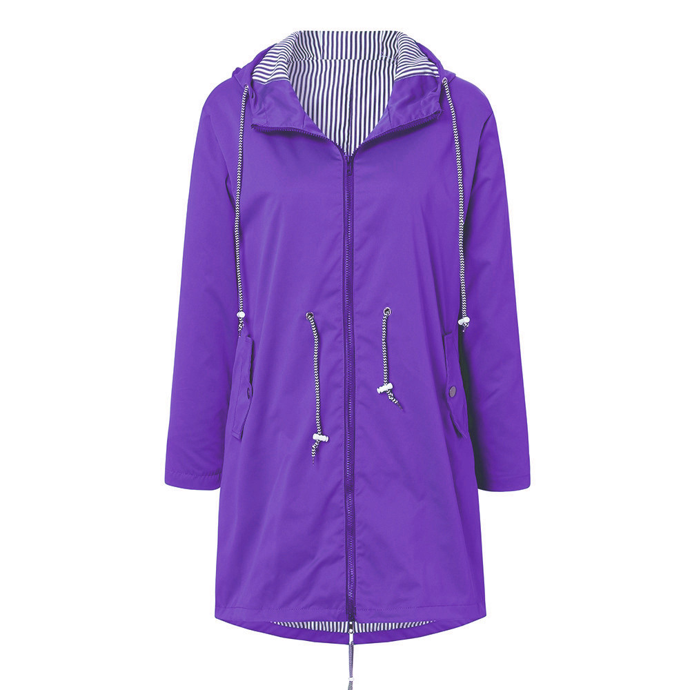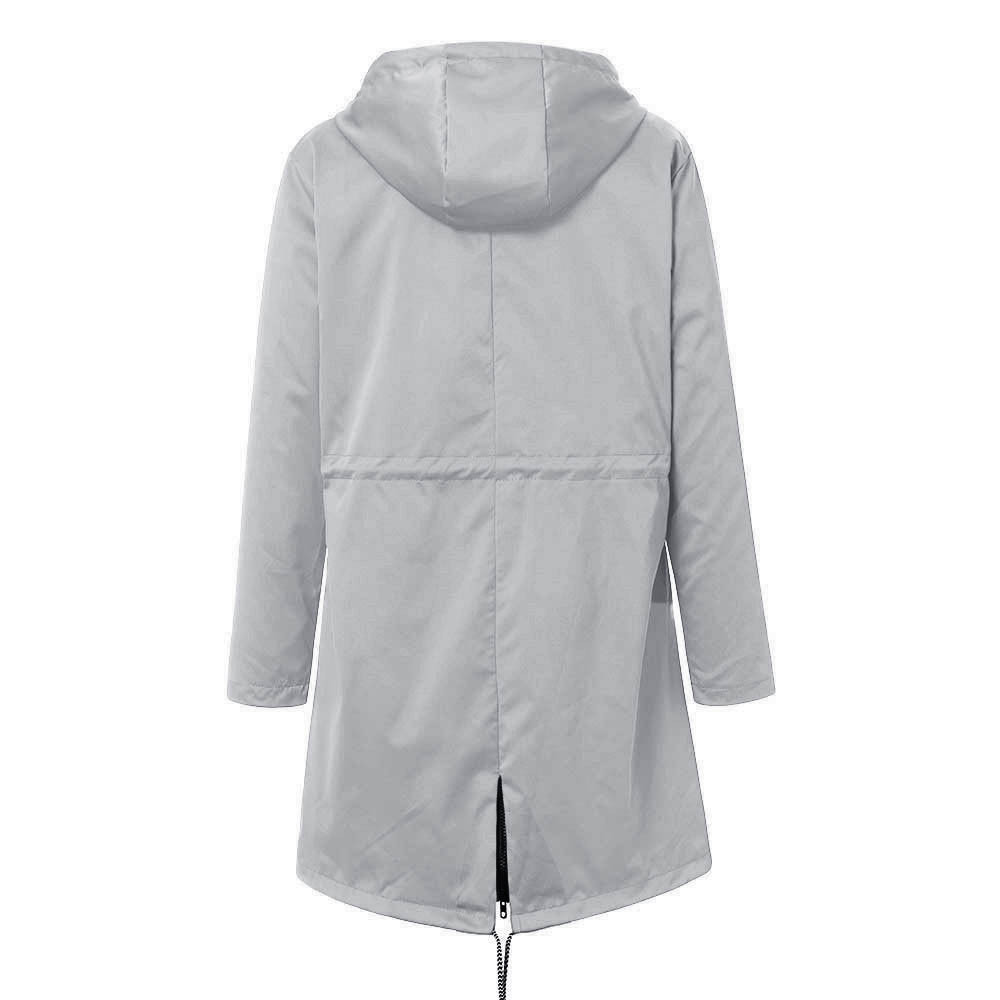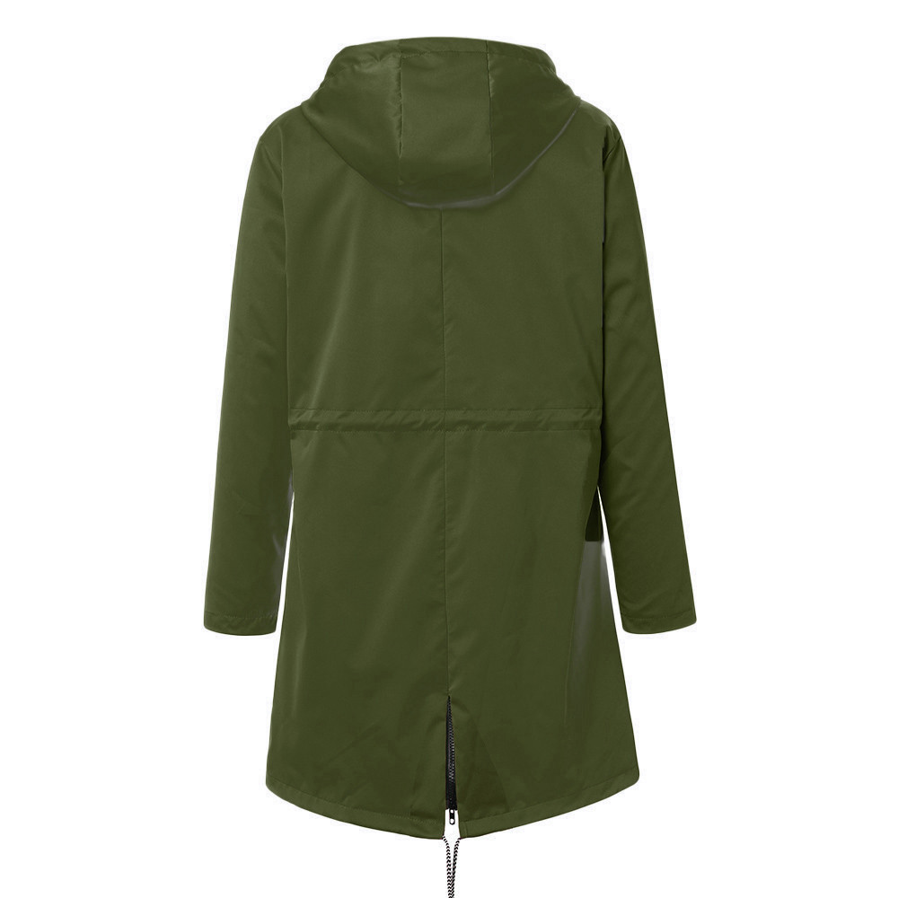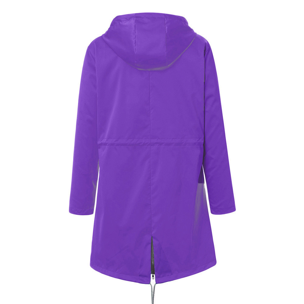 Женский однотонный дождевик для улицы размера плюс, водонепроницаемая ветрозащитная Свободная куртка с капюшономЖенский однотонный дождевик для улицы размера плюс, водонепроницаемая ветрозащитная Свободная куртка с капюшоном