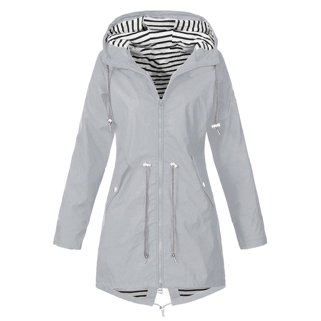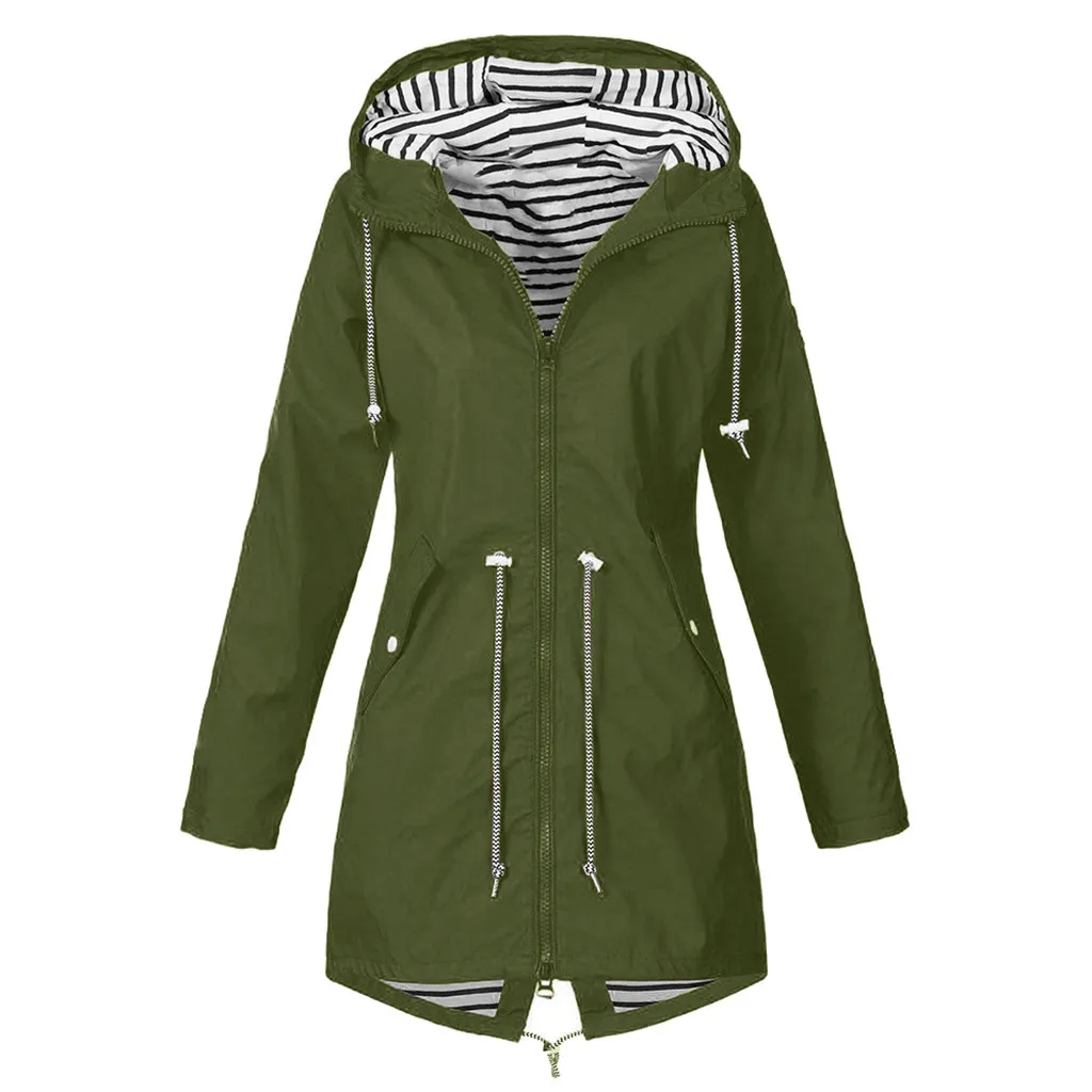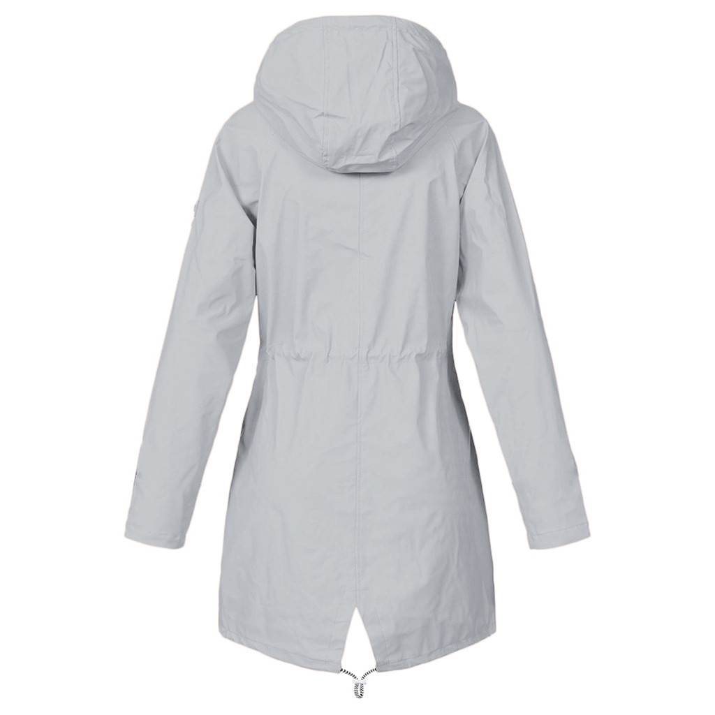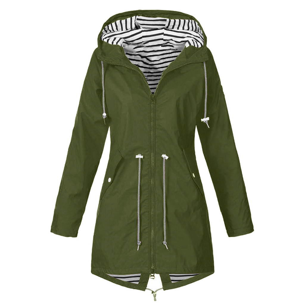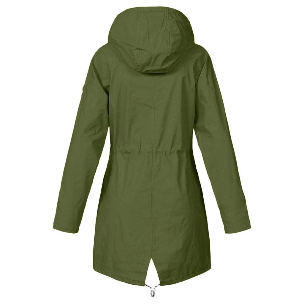 Женский однотонный дождевик для улицы размера плюс, водонепроницаемая ветрозащитная Свободная куртка с капюшономЖенский однотонный дождевик для улицы размера плюс, водонепроницаемая ветрозащитная Свободная куртка с капюшоном