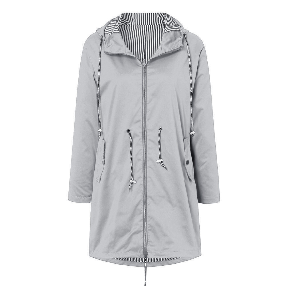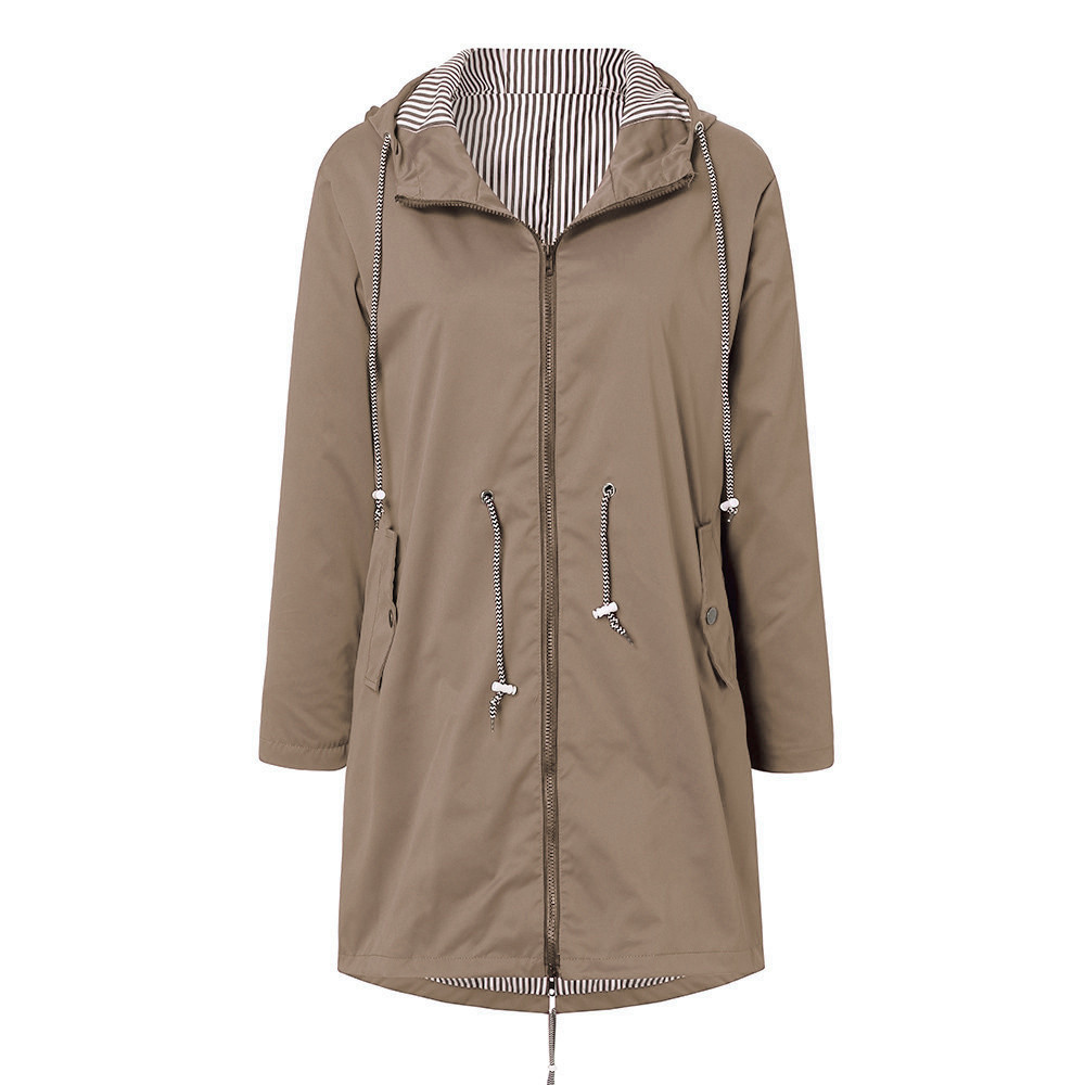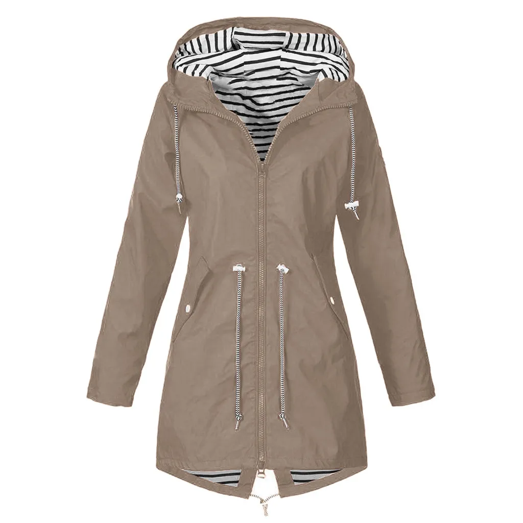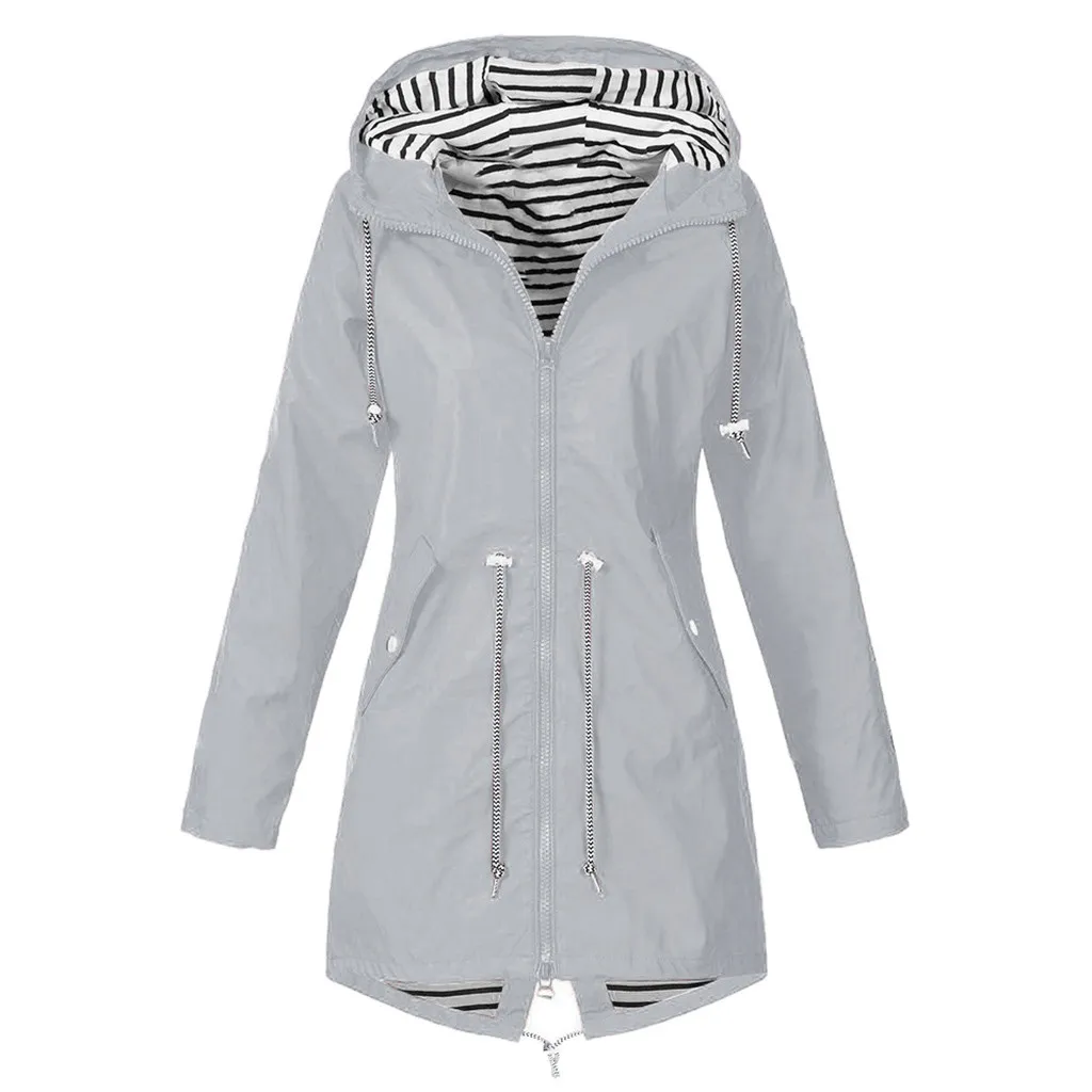Женский однотонный дождевик для улицы размера плюс, водонепроницаемая ветрозащитная Свободная куртка с капюшономЖенский однотонный дождевик для улицы размера плюс, водонепроницаемая ветрозащитная Свободная куртка с капюшоном