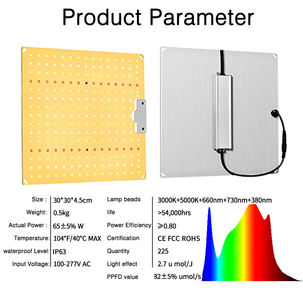 Эта лампа является последней разработкой квантовой пластинчатой лампы на нашей фабрике. 3200K-теплый свет, 4500K-естественный свет. Спектр 3200K + 4500K очень подходит для роста саженцев растений.