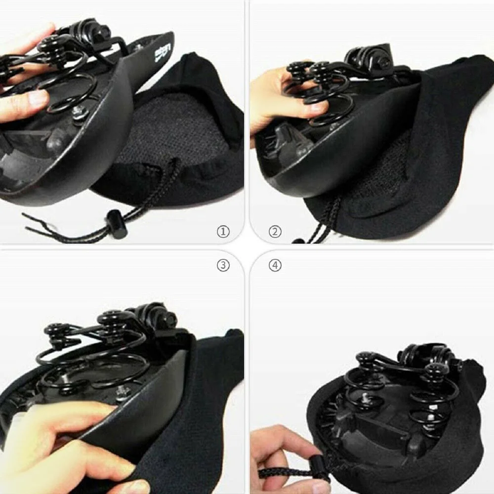 3. Просто поместите его на сиденье велосипеда и затяните его с прикрепленным шнурком.
