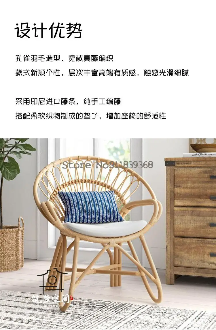 Отзывы о Japanese-style ins rattan single sofa chair natural real home living room lounge balcony lazy | Мебель