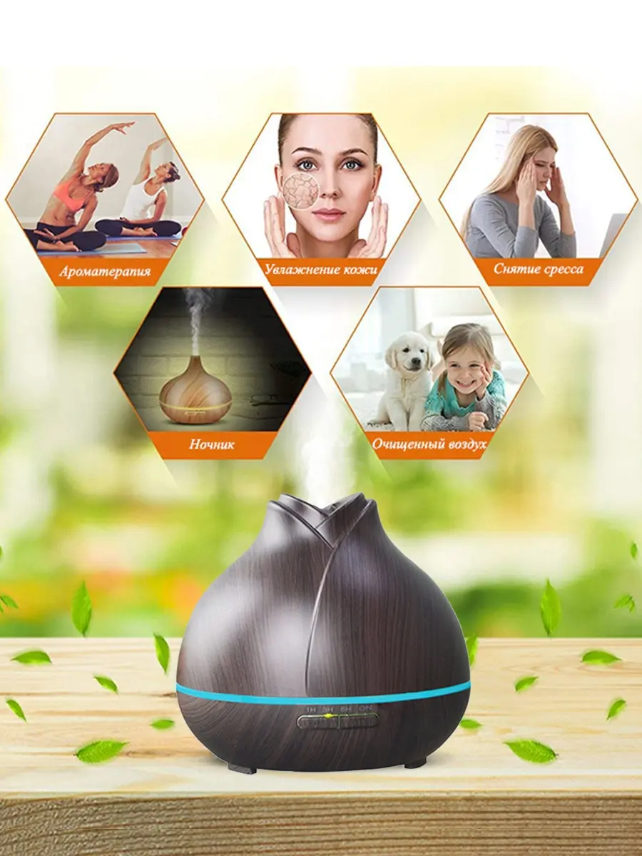 Компактный ультразвуковой увлажнитель воздуха создает идеальный микроклимат и сочетает в себе сразу несколько функций. Аромалампа, увлажнитель воздуха, ночник и стильный элемент декора, оформленный под темное дерево. Ультразвуковой принцип работы позволяет ему абсолютно бесшумно увлажнять воздух, превращая воду в холодный пар. А добавив в аромадиффузор несколько капель эфирного масла, вы наполните ваш дом нежным ароматом, создавая уютную и расслабляющую атмосферу. Ароматический диффузор имеет емкость для воды 400 мл и может работать без перерыва в течение 6-7 часов. Отключается автоматически при полном испарении воды или с помощью таймера через 1, 3, 6 часов. Густоту тумана можно регулировать. Выполненный из качественного пластика, арома увлажнитель ультразвуковой безопасен для детей. Оснащен 7-цветной подсветкой, идеально подойдет в роли ночника. Украшает интерьер, создает атмосферу спокойствия и уюта. Современный стильный ультразвуковой аромадиффузор для чистого, свежего воздуха.