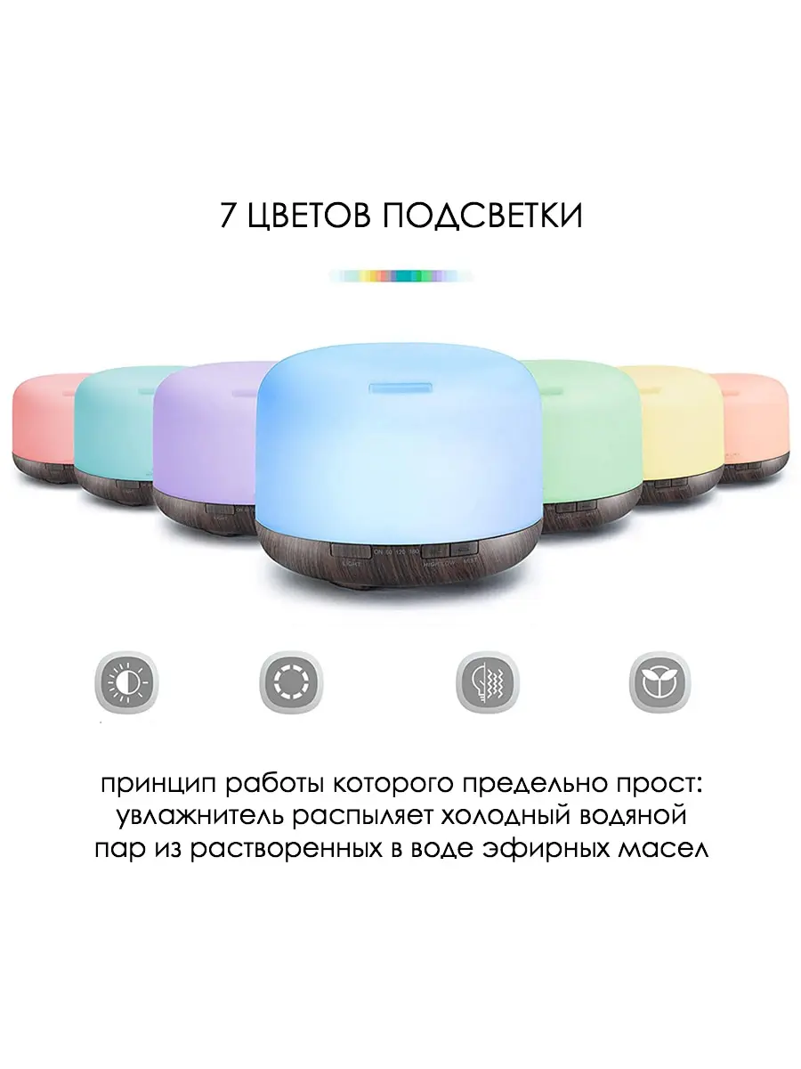 Отзывы о Аромадиффузор 300 мл семь цветов подсветки цвет темное дерево 12 5х10 см Aromic AM-37 -