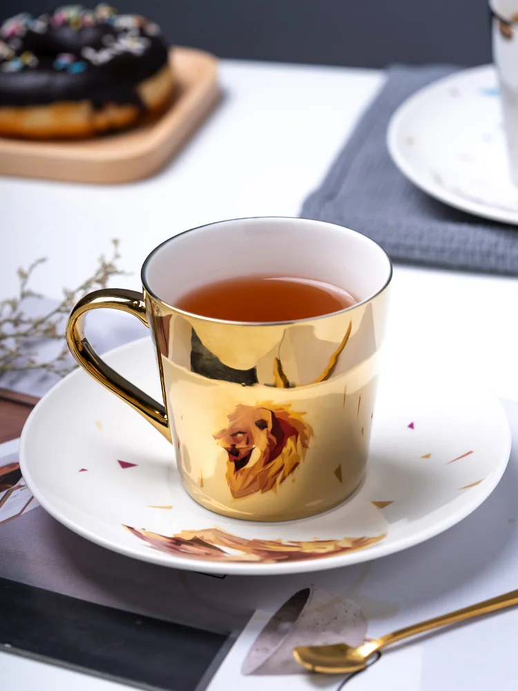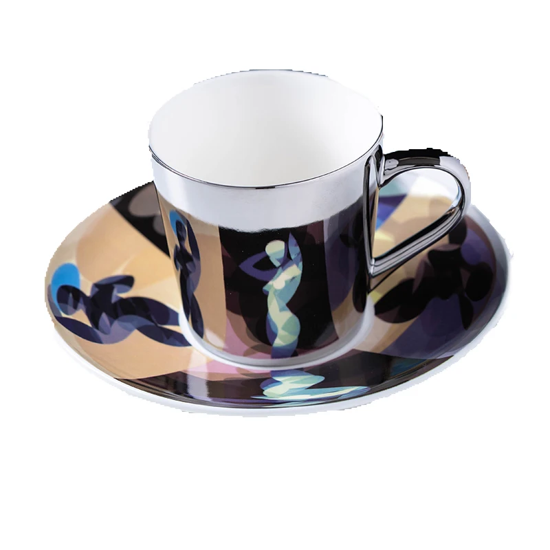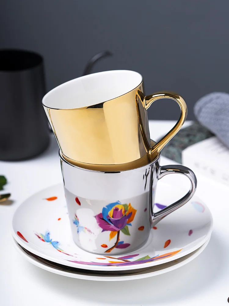 Отзывы о Креативная зеркальная чашка керамическая кофейная и блюдце в комплекте