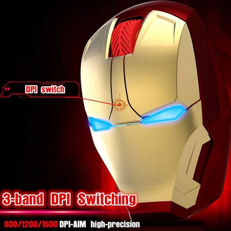 2,4G Беспроводной компьютерная мышь «Железный человек» игровая компьютерная мышь для геймеров бесшумный щелчок 800/1200/1600/2400 Точек на дюйм Регулируемый USB оптическая мышь для ПК