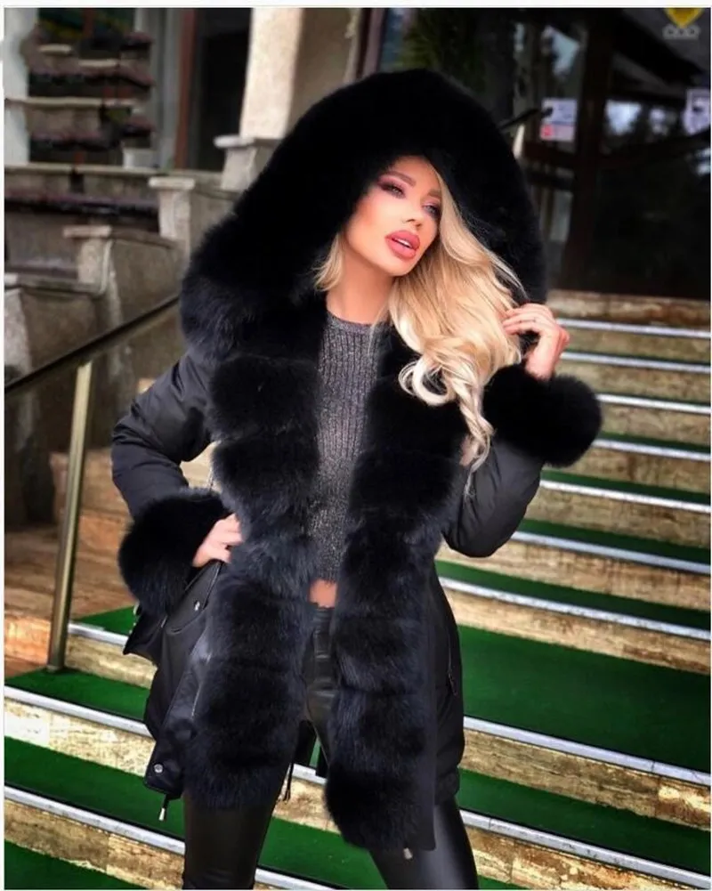 Отзывы о Зимняя женская куртка средней длины 7XL черная верхняя одежда плотные парки шуба