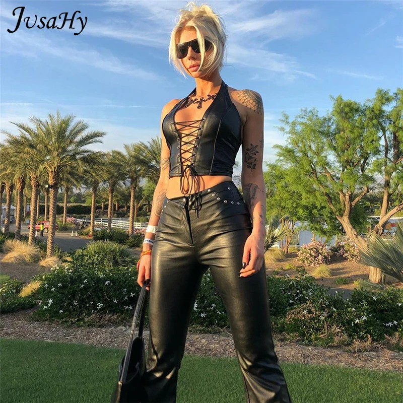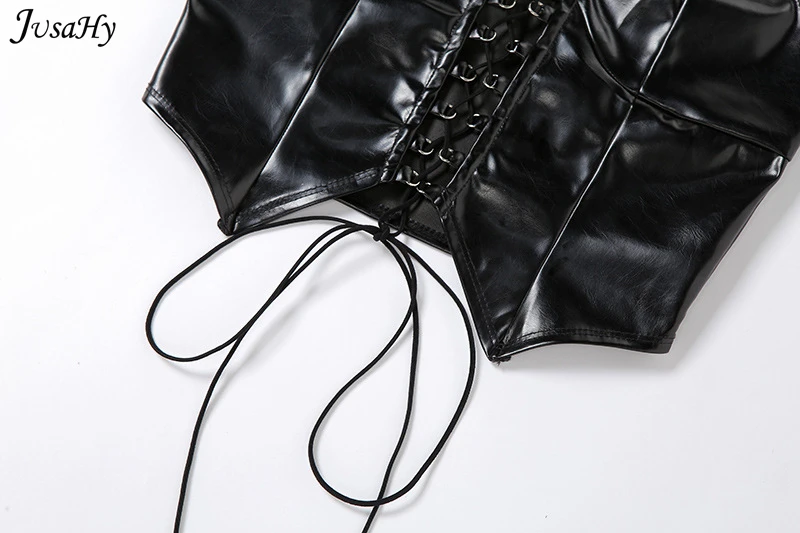 Отзывы о JusaHy панк Стиль Y2K черный кожаный Топ для женщин Banadage полые с низким вырезом на