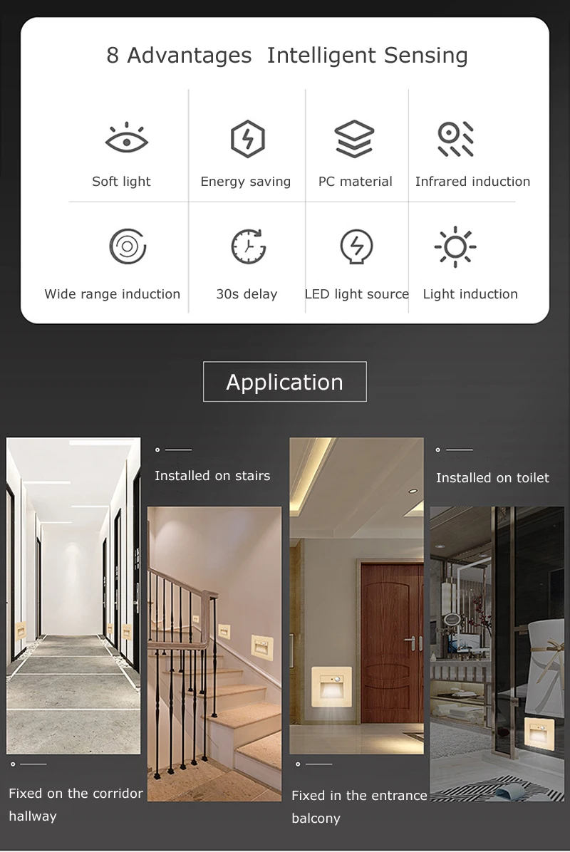 Встраиваемый светодиодный светильник на стену + датчик движения PIR 86 модель лестничный светильник светодиодный светильник для ступни для лестницы кухня фойе лоджия