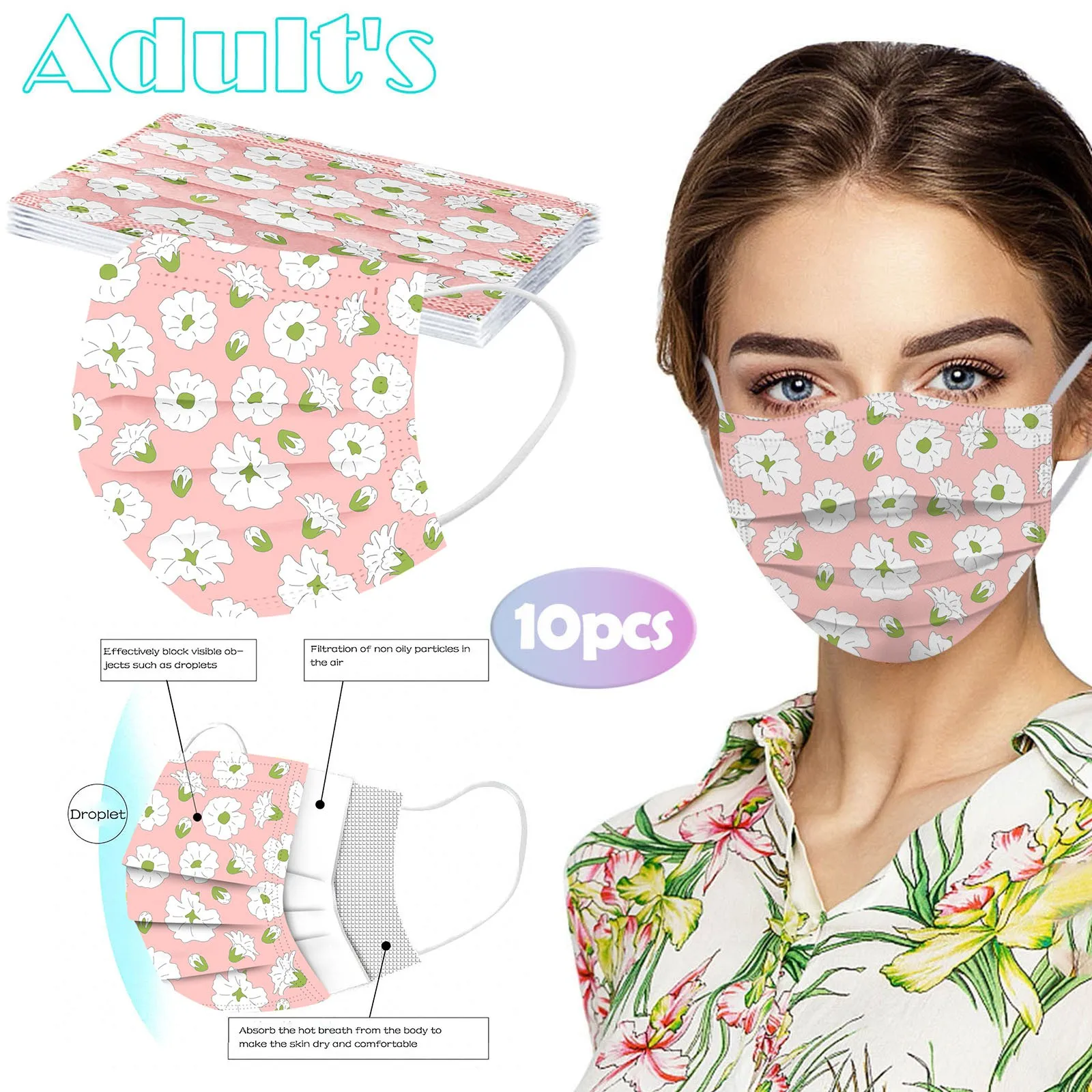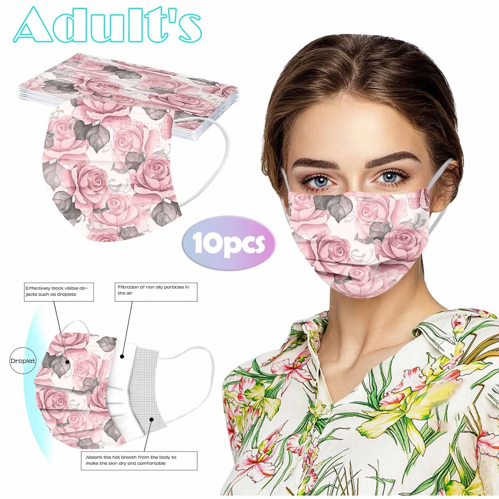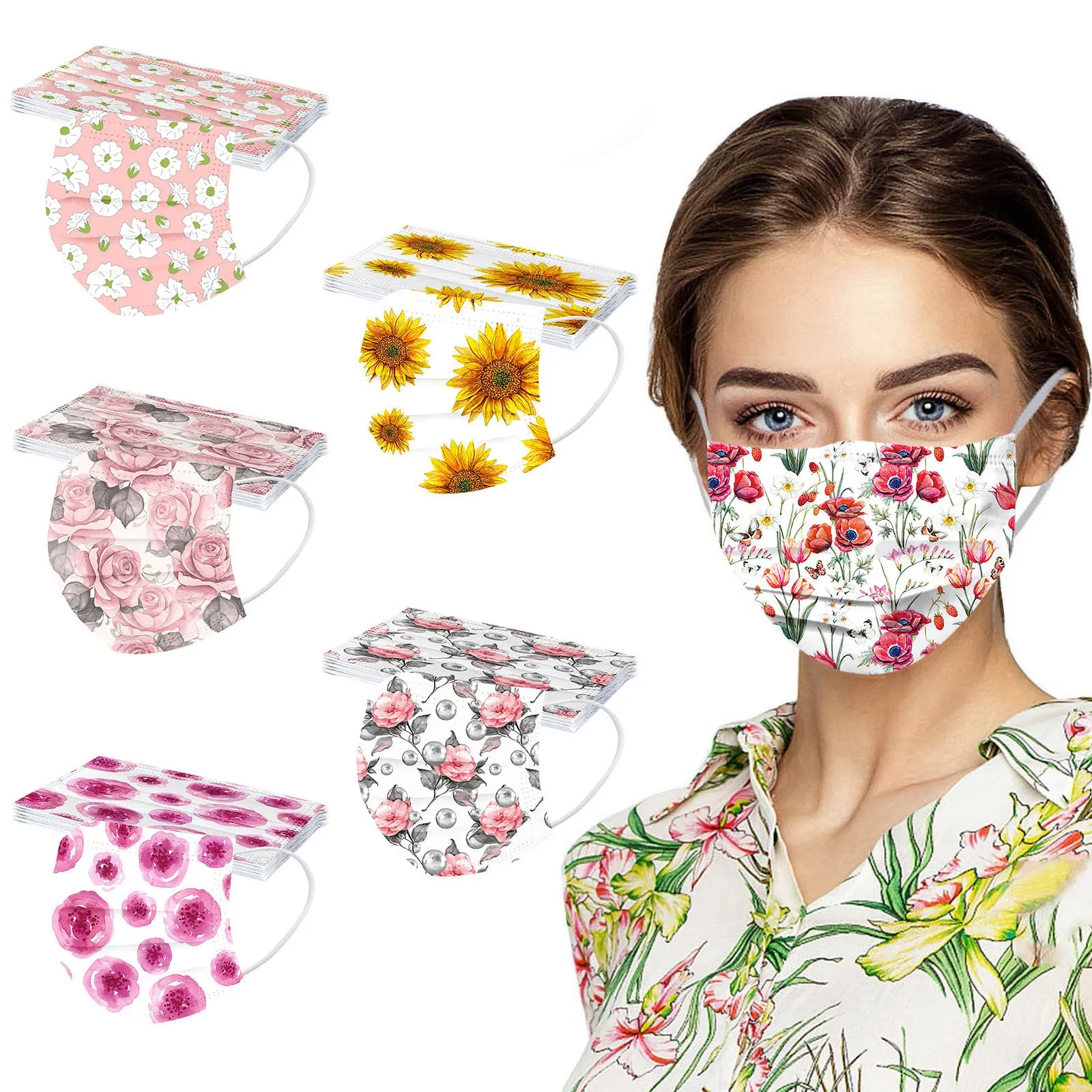 Отзывы о Маска одноразовая трехслойная для взрослых и женщин маска с цветочным принтом