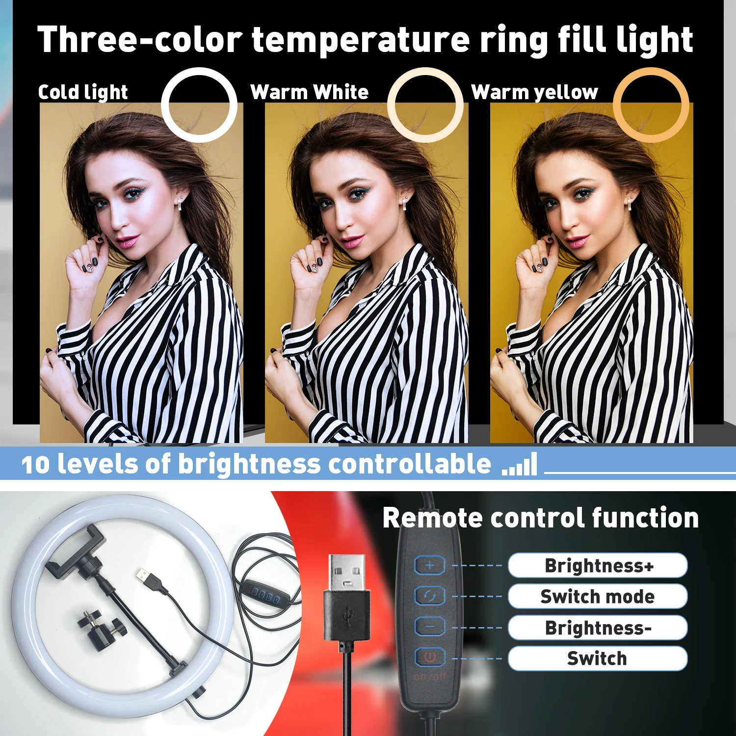 О кольцевой светильник, у нас есть модель 6 10 12 13 18 дюймов, и соответствующие аксессуары, такие как штатив, видео клип и т. Д. Пожалуйста, свяжитесь со мной.