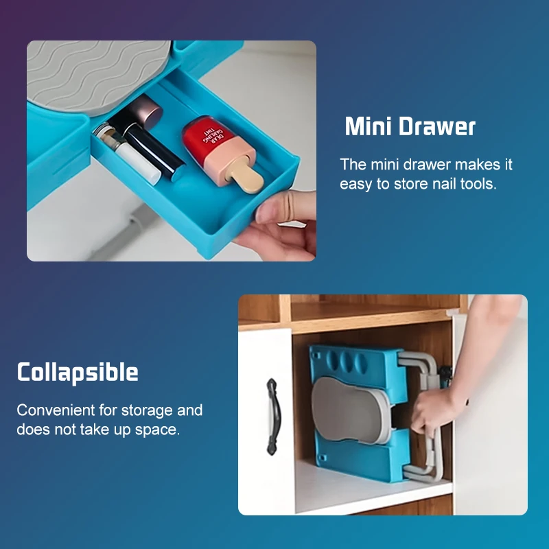 Безопасный и безопасный-обеспечивает стабильную и антимикробную платформу для работы на ногтях, пока вы находитесь в удобном положении на любом стуле! Характеристики: прочная, нескользящая конструкция, гелевые комфортные подушки и складные ножки для стабильности и удобного хранения.