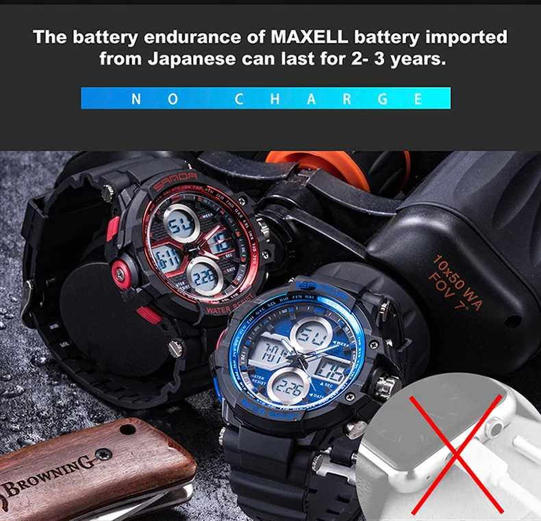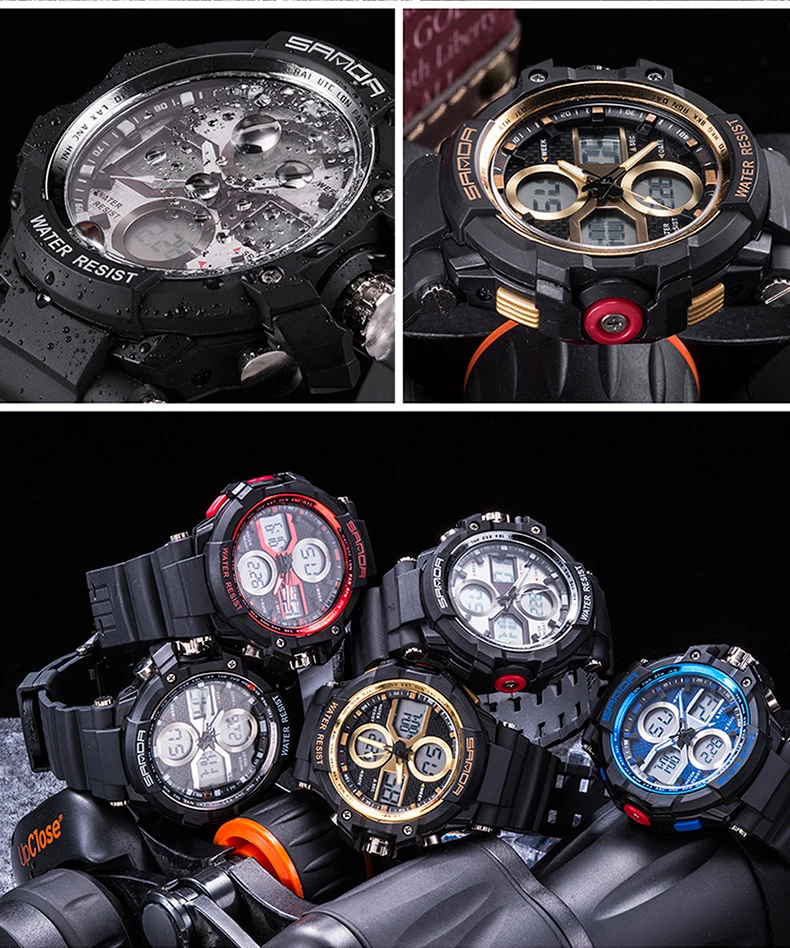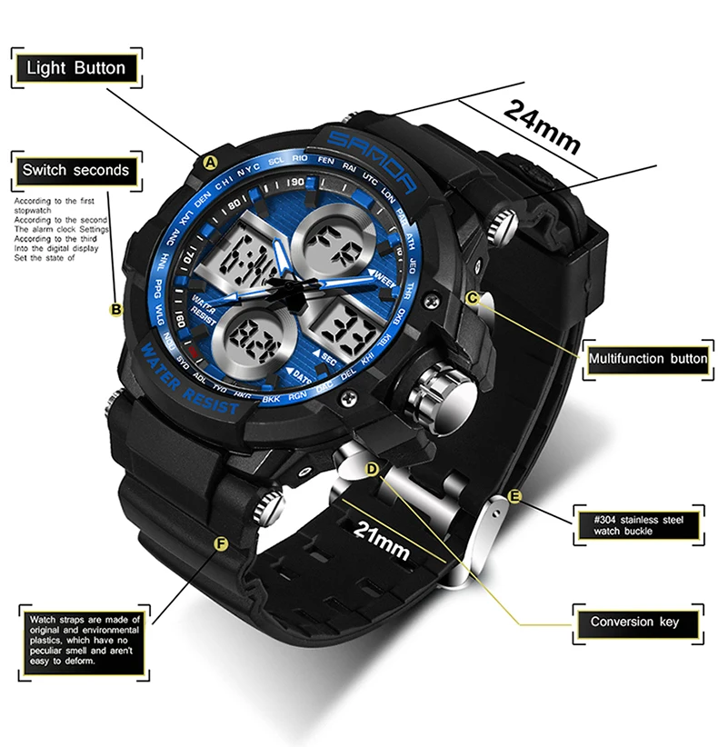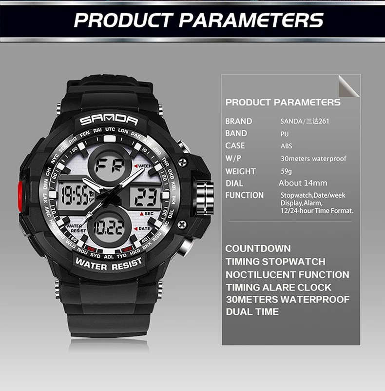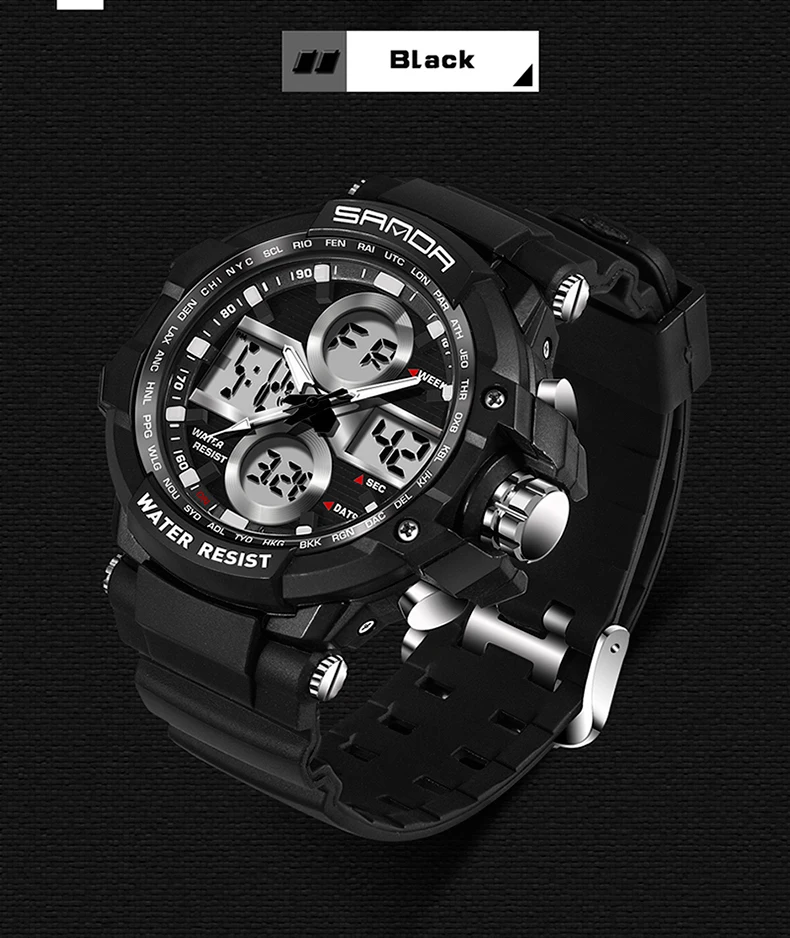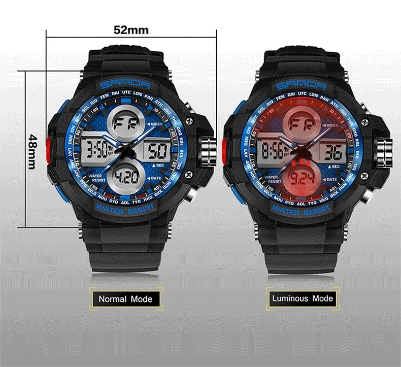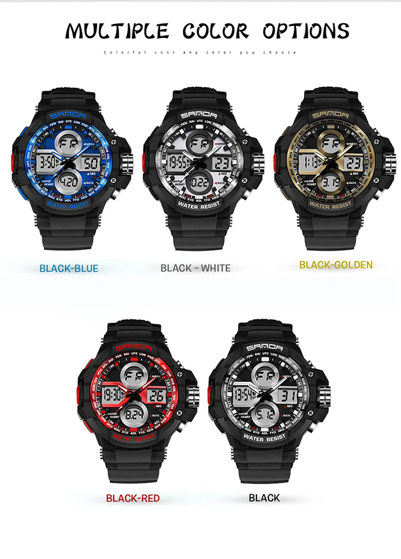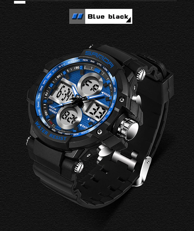 SANDA Брендовые мужские спортивные часы, мужские Аналоговые Цифровые кварцевые часы с двойным дисплеем, светодиодный водонепроницаемый часы для плавания