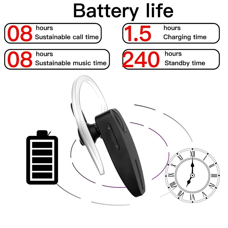 5. Больше время работы в режиме: встроенный аккумулятор 90 мАч перезаряжаемая литиевая батарея для того, чтобы обеспечить супер Время работы от аккумулятора, поддержка воспроизведения до 5-8 часов, время работы в режиме разговора до 5-7 часов, быстрая зарядка 1,5 часов.