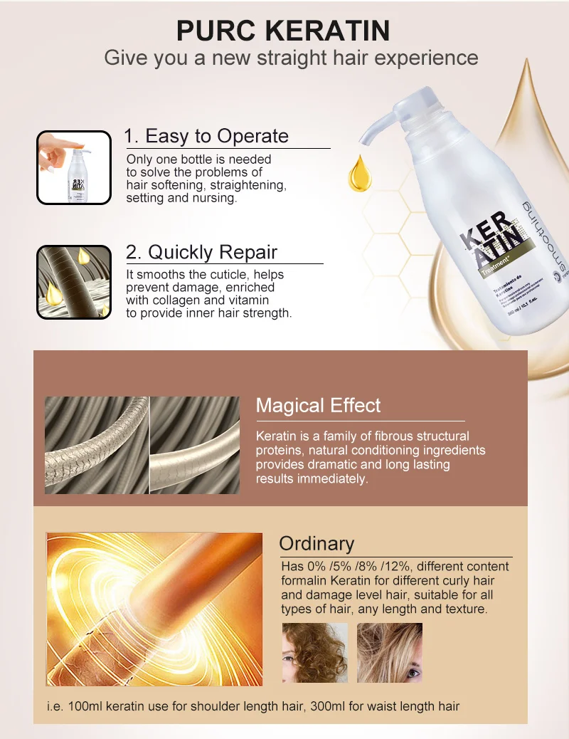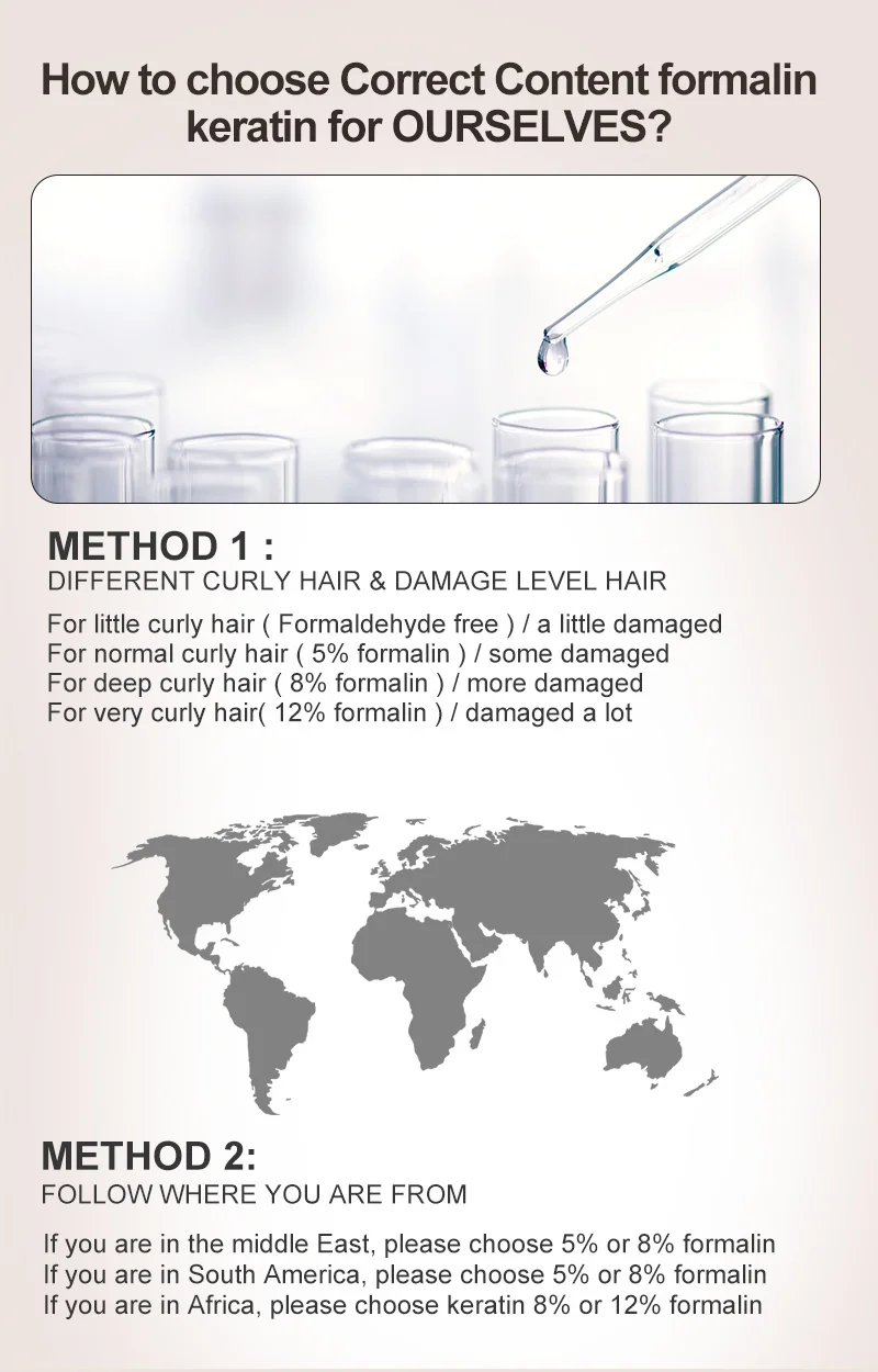 Обратите внимание:1. В том случае, если ваши волосы естественно вьющиеся, поэтому, пожалуйста, выбирайте 8% или 12% формалина кератина