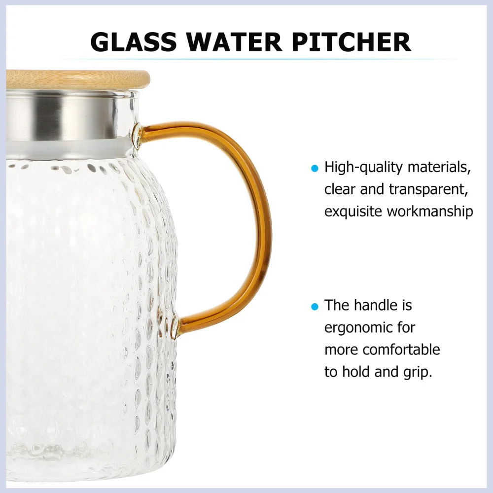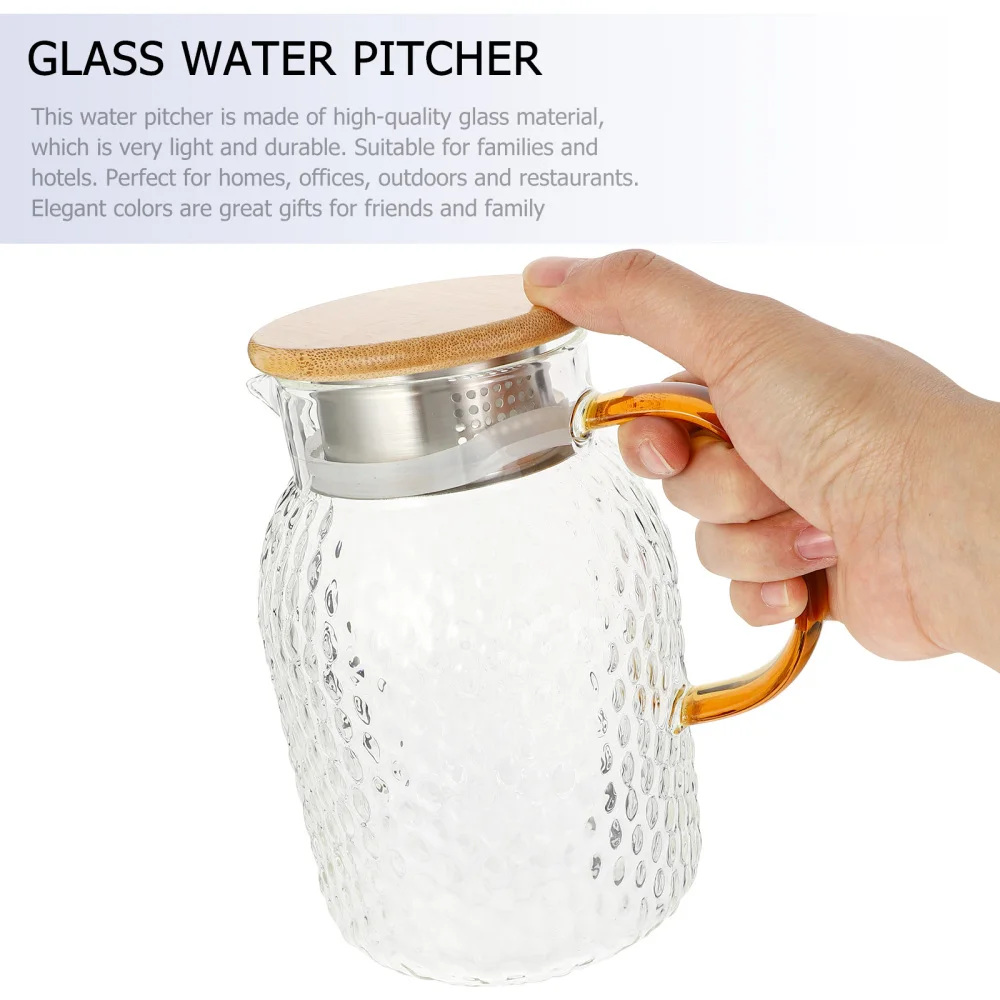 ОписаниеКувшин для воды изготовлен из высококачественного стеклянного материала, имеет прозрачный внешний вид и долговечен. Его можно использовать в горячей и холодной воде и легко чистить. Подходит для использования в семье и кафе. Идеальный горшок для холодных напитков, воды, чая, кофе и т. д. это незаменимый элемент в вашей повседневной жизни.