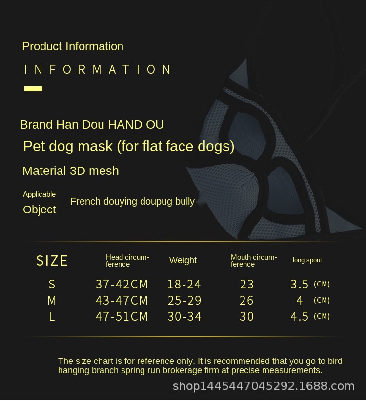 1. Выберите Пояснительный чехол для рта собаки, больше его размера
