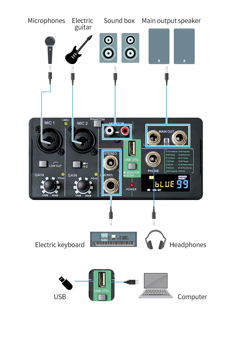 Отзывы о Портативный мини смеситель звука 99 цифровых эффектов звуковые карты смесители в