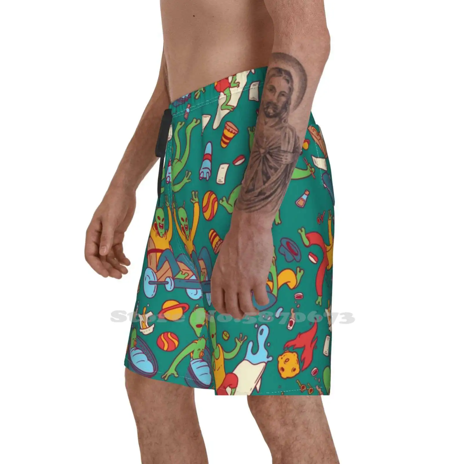 Отзывы о Мужские спортивные пляжные шорты Happy Aliens с рисунком из мультфильма - купить по