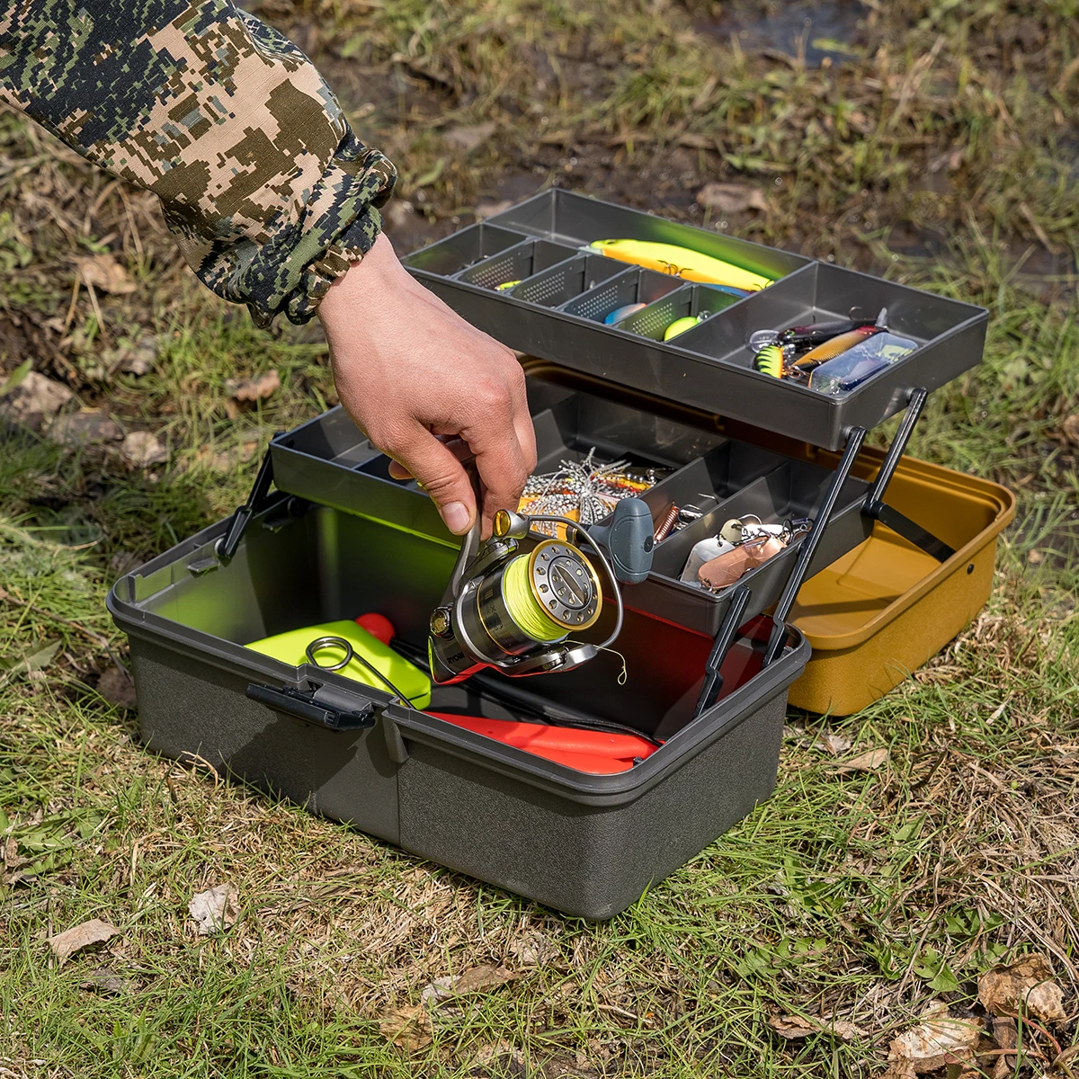 Отзывы о Ящик рыболова двухполочный золотой Helios | Спорт и развлечения