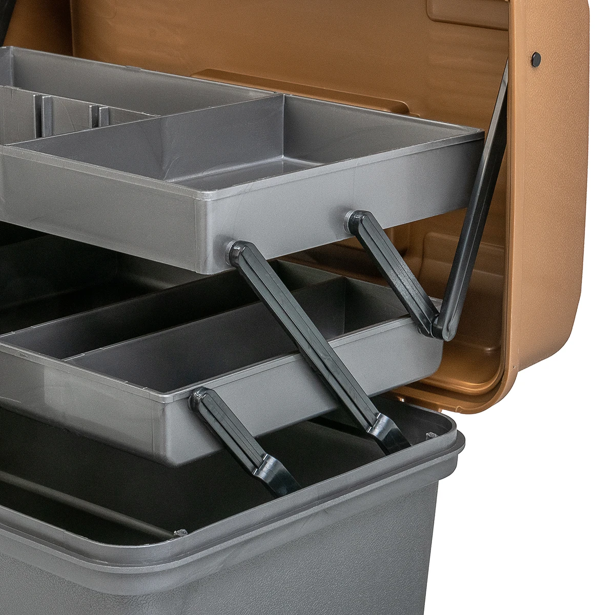Ящик рыболовный бренда Helios производится в России на заводе Тонар! Наш ящик рыбацкий - полезное приобретение для каждого рыболова. Он поможет легко навести порядок в своих снастях, разложить приманки по группам, крючки по размерам, леску по диаметру и все остальное по удобным параметрам. Каждая полка поделена на секции, что значительно облегчает подбор необходимых приманок или других предметов на рыбалке. Мы производим наши рыболовные ящики из ударопрочного полипропилена, поэтому они послужит вам не один год, а снасти внутри него будут под надежной защитой. Ящик рыболовный Тонар имеет достаточный размер, чтобы разместить на дне две-три спиннинговые катушки. Ящик рыболова - это еще и отличный подарок, к тому же его можно не упаковывать, достаточно прикрепить нарядный бант к ручке и положить внутрь открытку. Закрывается этот ящик подарочный на прочную защелку и имеет удобную ручку для переноски. Ящик рыболова двухполочный золотой (T-HS-FB2-GO) Helios