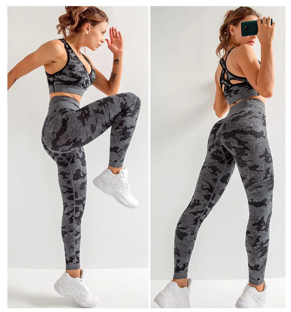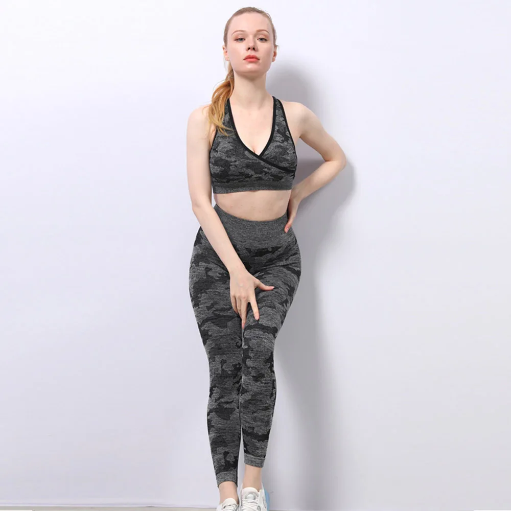 Отзывы о 2 шт. Камуфляжный комплект для йоги спортивная одежда женщин фитнеса ботинки