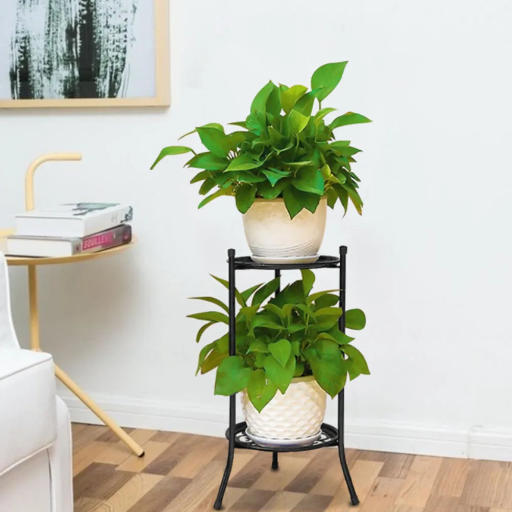 2 держателя, подставка для цветов, металлическая подставка для растений, цветочный дисплей, полка для сада, патио, дома, на открытом воздухе, черный поднос для цветов, украшение для дома