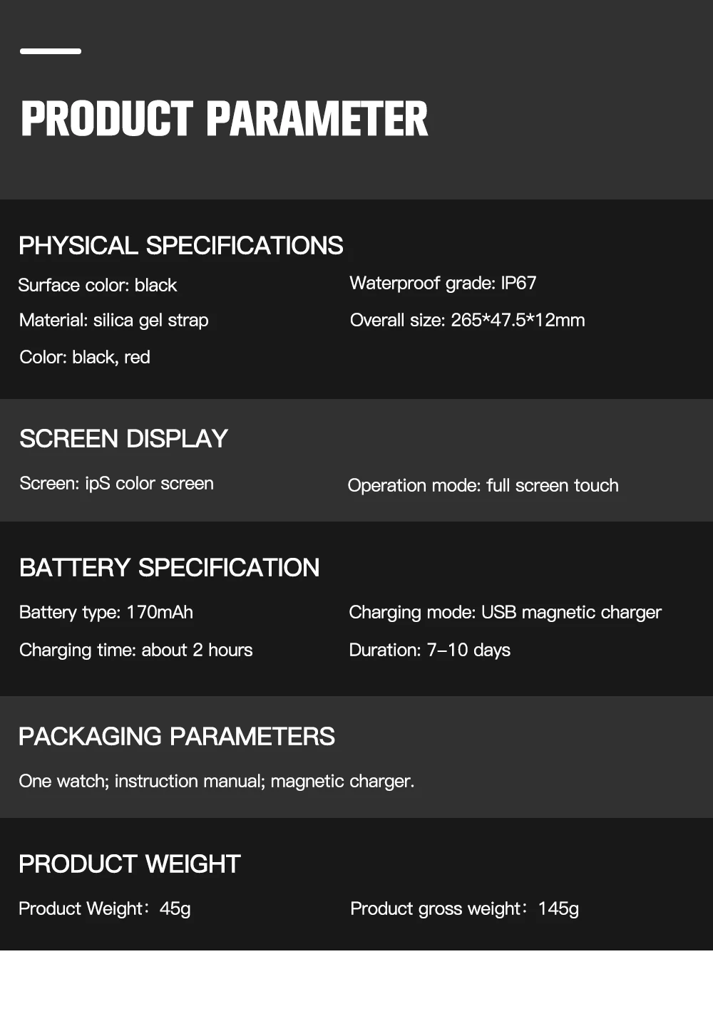 Основные функции: температура, мониторинг сердечного ритма, кровяное давление, уровень кислорода в крови, шаг, расстояние, калории, несколько режимов упражнений (бег, гольф, бейсбол, теннис, Велоспорт, плавание, футбол, баскетбол), мониторинг сна, оповещение о звонках (номер вызова/имя), Оповещение об информации, погода, будильник, напоминание о сидячем положении, поднятый экран запястья, удаленная камера, И т. д ..