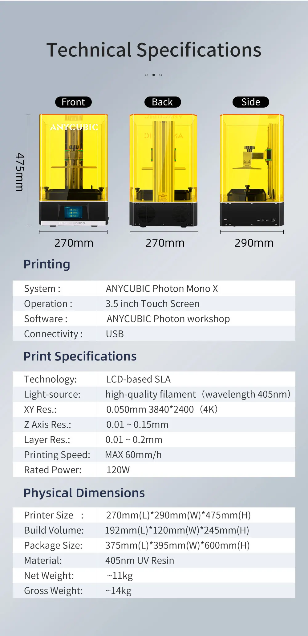 Отзывы о Anycubic Photon Mono X 3D принтер 8 9 'ƊK монохромный Большой объем сборки 192*120*245 мм быстрая