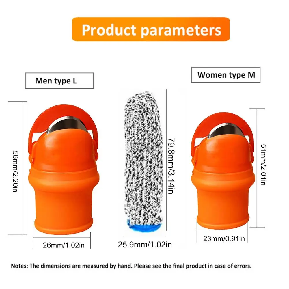 3. Простота в использовании: резцы для большого пальца очень просты в носке, вам просто нужно положить нож для большого пальца на большой палец, наденьте силиконовое покрытие для пальца на указательный палец, И тогда вы можете начать работать