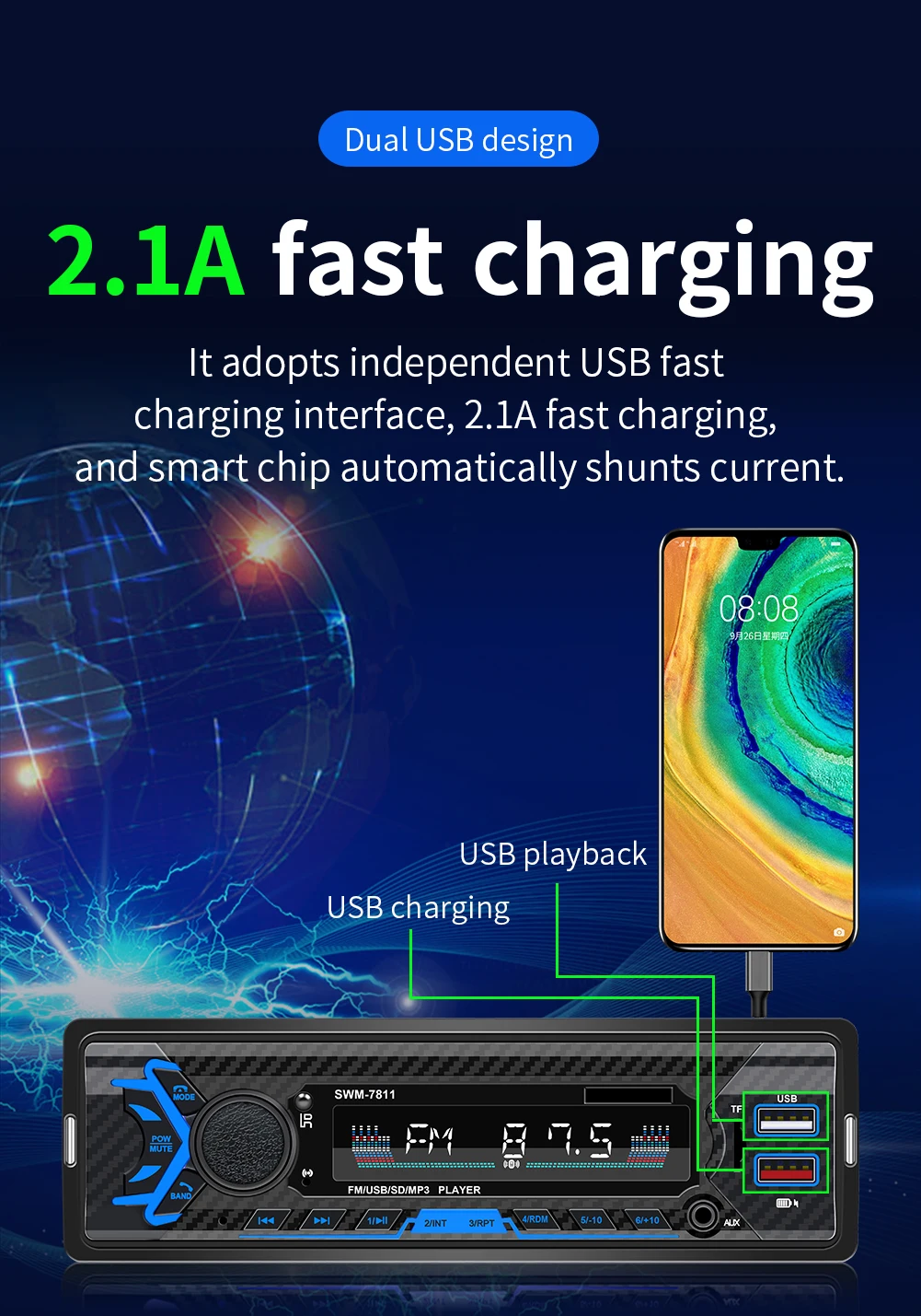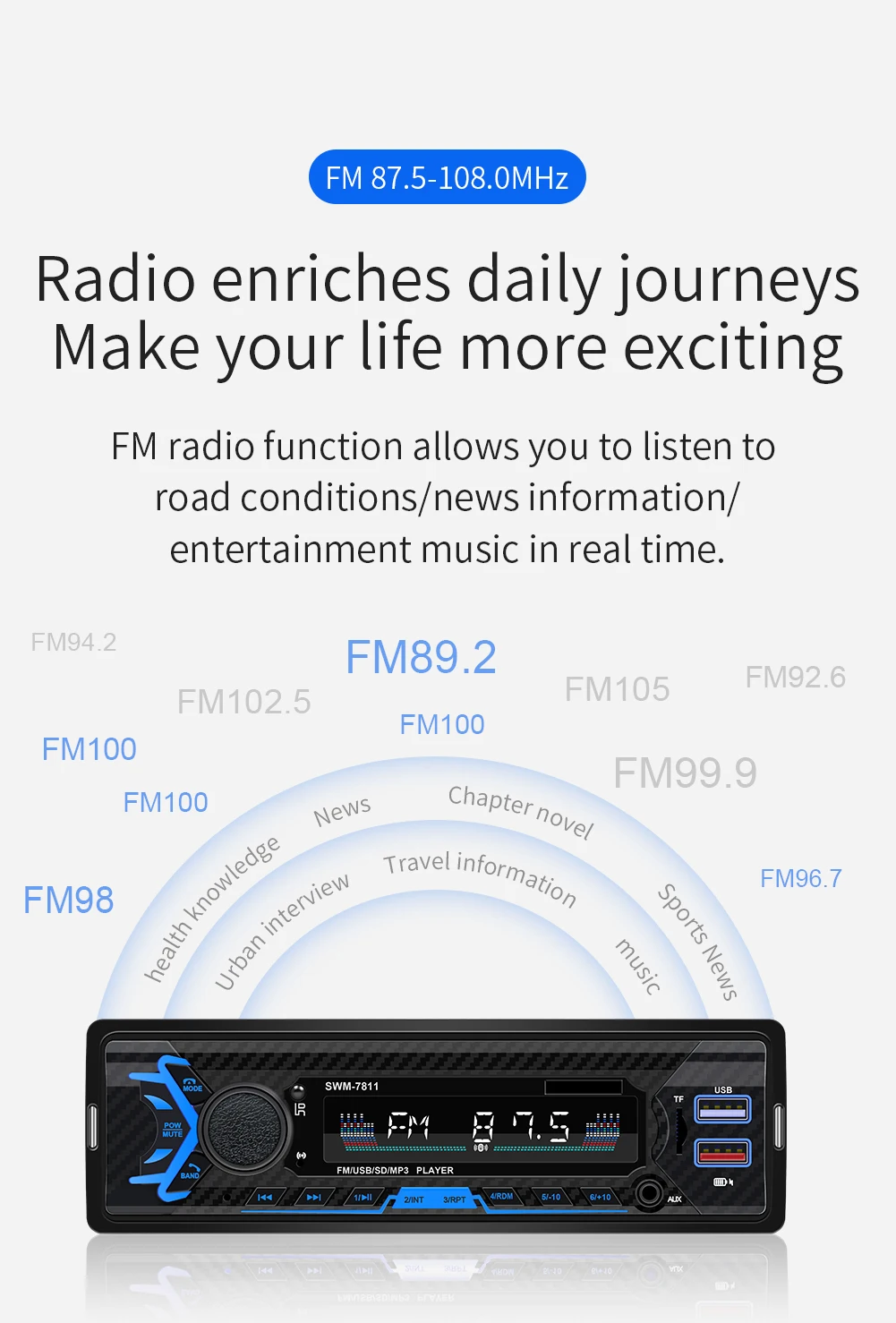Авто Радио 1 Din Bluetooth автомобильный стерео приемник FM MP3 плеер Handsfree A2DP TF USB зарядка рулевое колесо Пульт дистанционного управления головное устройство 7811