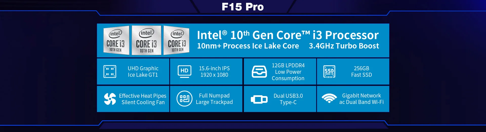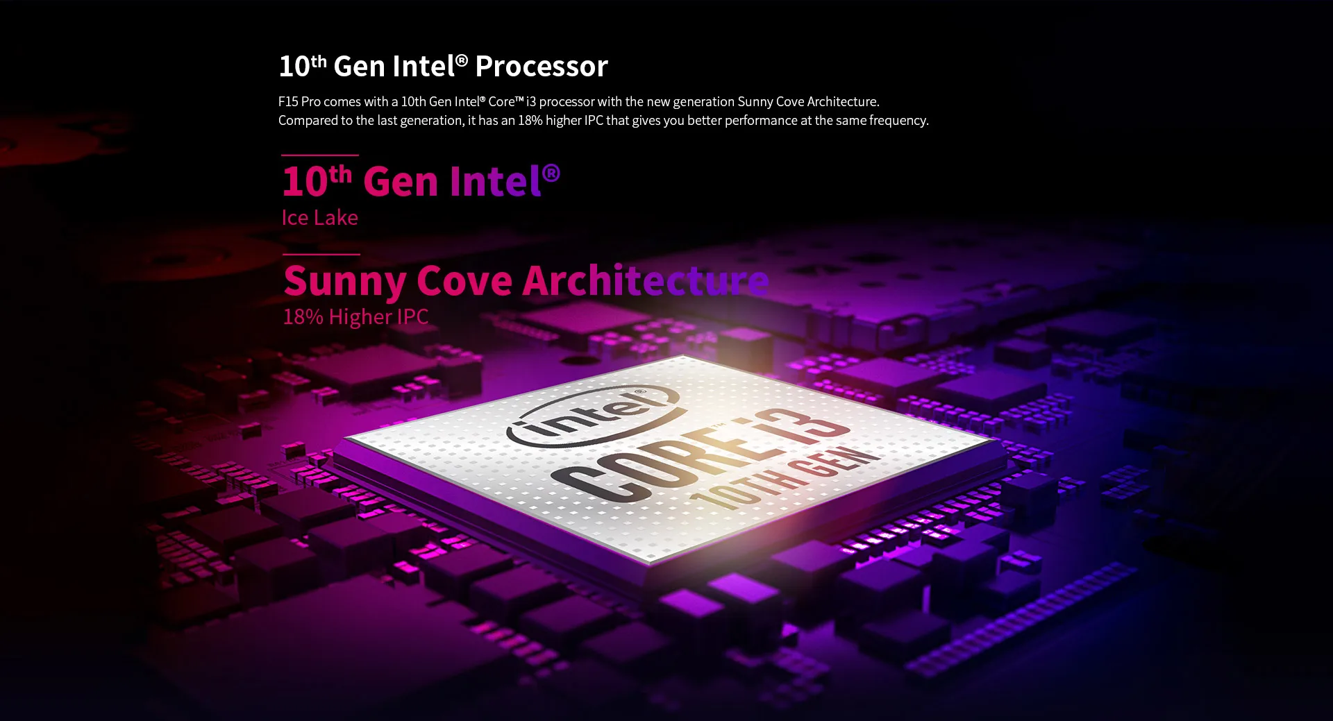 F15 Pro viene con un procesador Intel Core i3 de 10 ° generación con la nueva generación de arquitectura Sunny бухта.