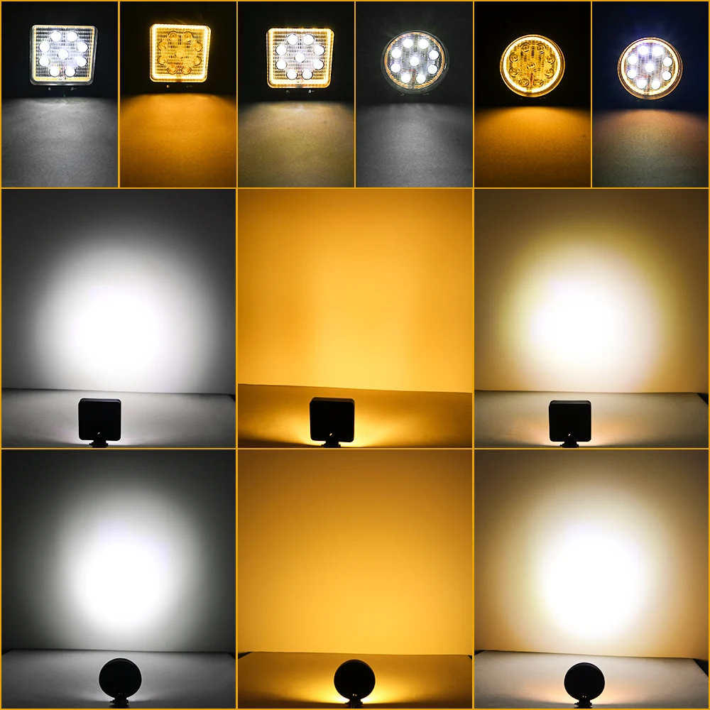 Светодиодный рабочий светильник 27 Вт 9 Барра квадратный круглый Точечный светильник DRL автомобильный светильник для 4x4 Led бар внедорожный внедорожник ATV Грузовик Экскаватор белый Янтарный