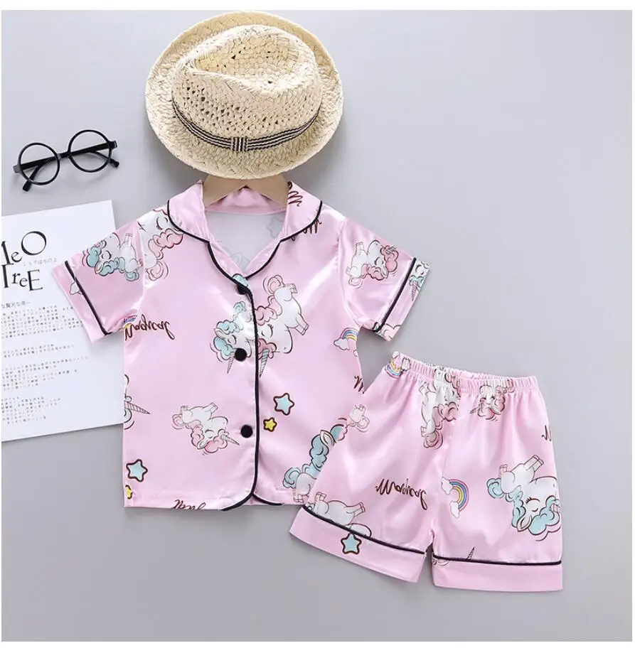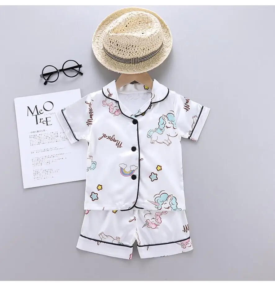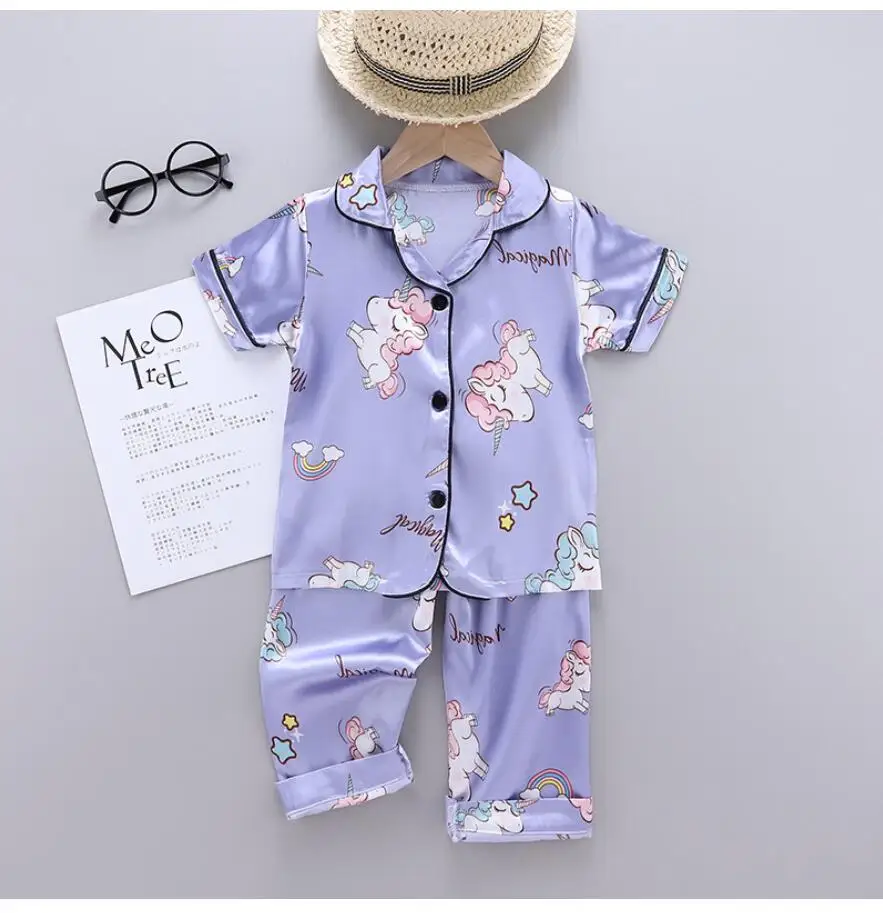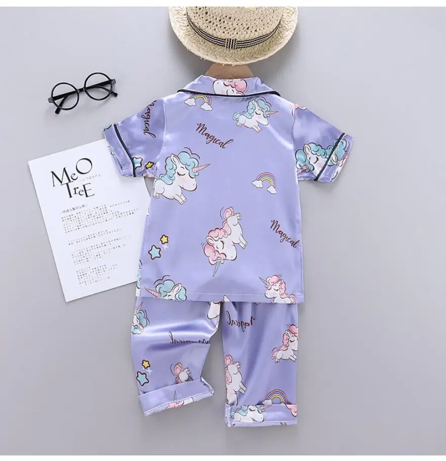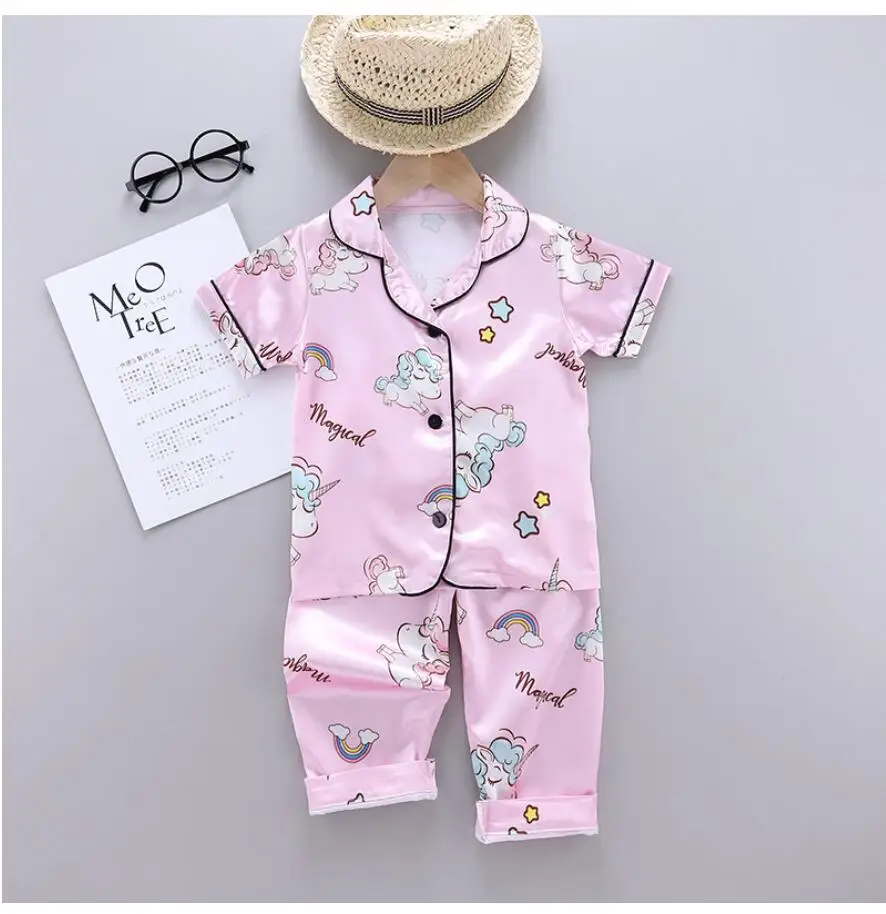 Отзывы о Пижама для девочек шелковая с принтом единорога штаны ночная рубашка От 1 до 10 лет