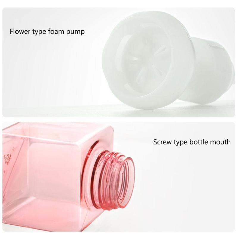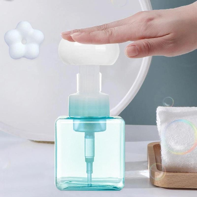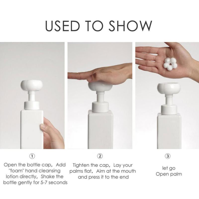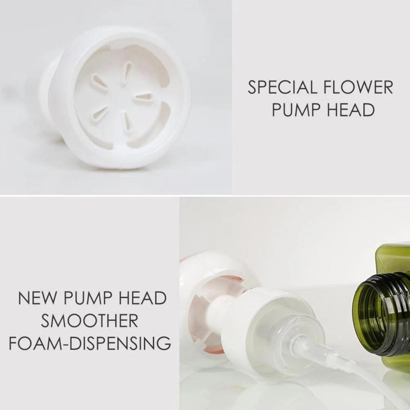 Распределитель пены: Эта бутылка имеет дизайн головки насоса в форме цветка, который может легко создать плотную пену.