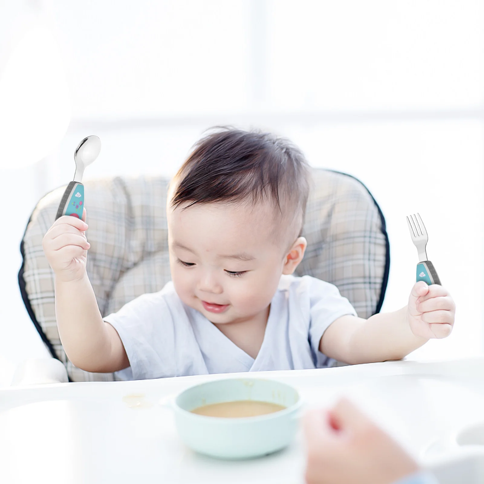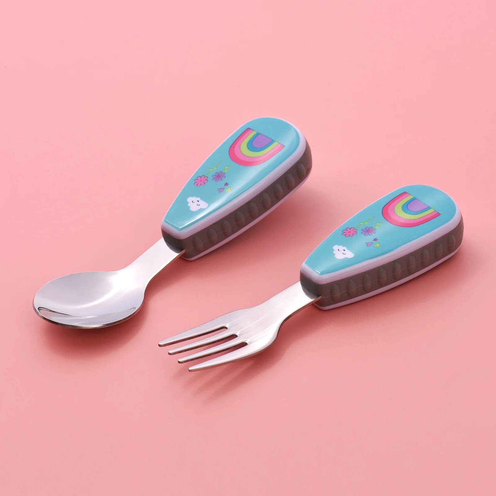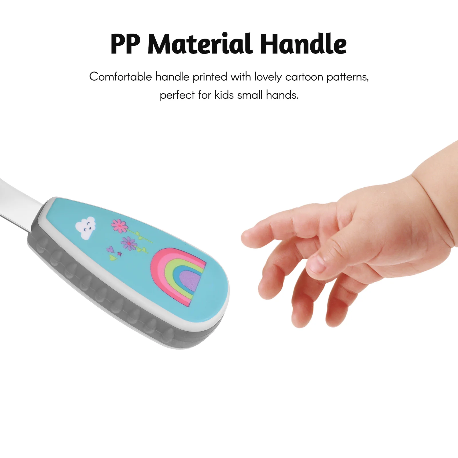 Comfortable handle printed with lovely cartoon patterns, perfect for kids small hands and encourages independent eating.