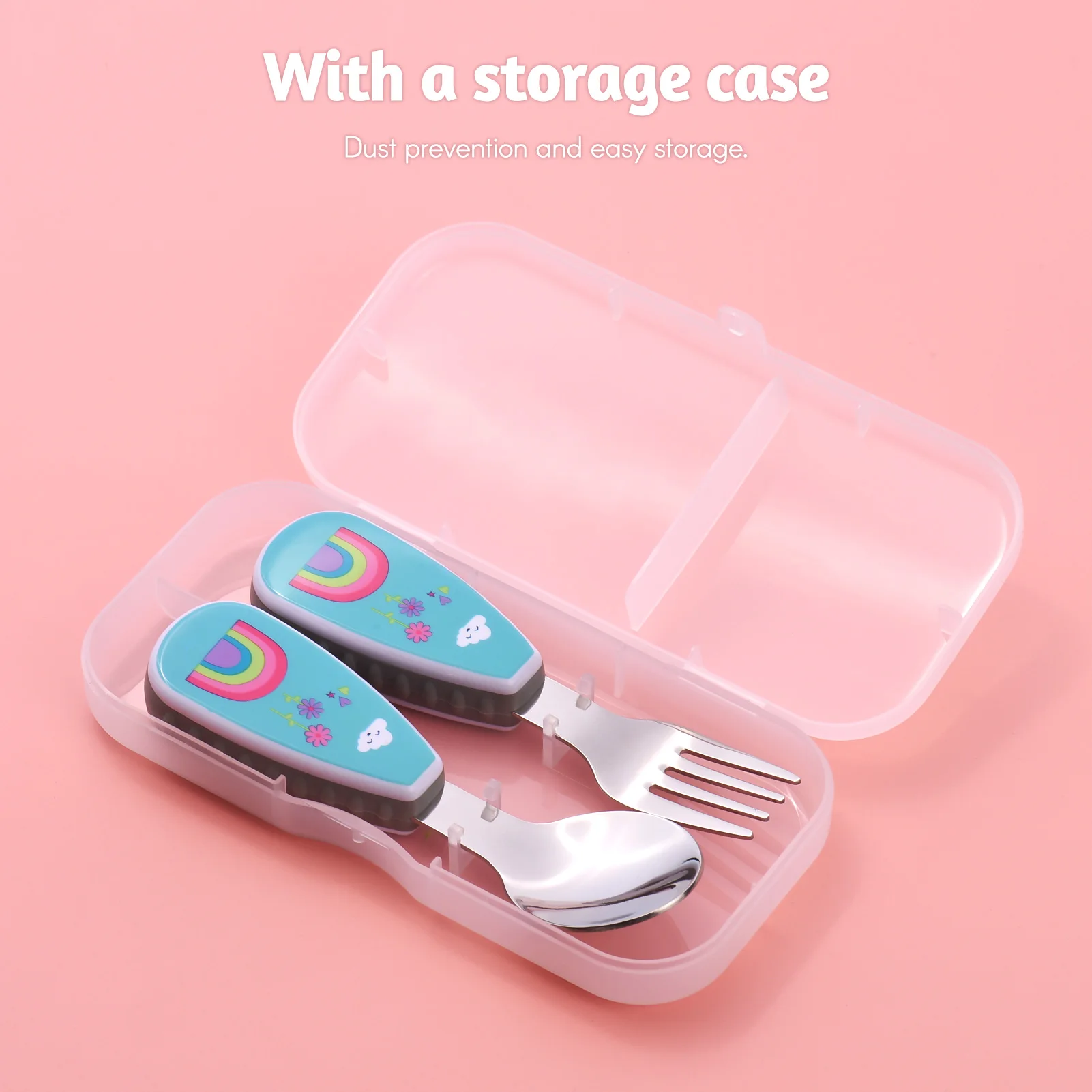 Отзывы о Cute Kids Spoon and Fork Set Stainless Steel & PP Material with Lovely Patterns for 12+ Month Toddlers Storage Case |