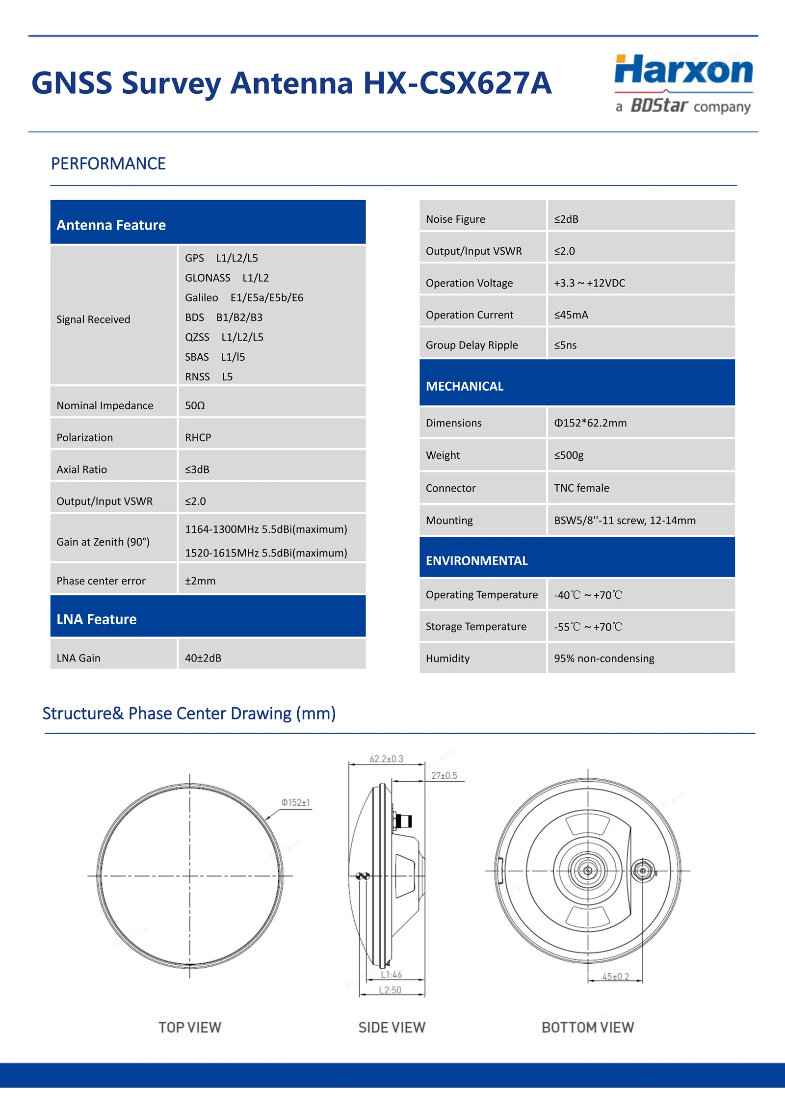 Коэффициент усиления вершины | L1 ≥ 5,5dbi L2 ≥ 5.0dBi L5 ≥ 3.5dBi L-band≥ 3,5 дБи | G1 ≥ 5.0dBi G2 ≥ 5.0dBi | В1 ≥ 5,0дби В2 ≥ 4,5 дБи В3 ≥ 4,5 дБи | E1 ≥ 5.0dBi E2 ≥ 5.0dBi E5a ≥ 3.5dBi E5b ≥ 4.5dBi |