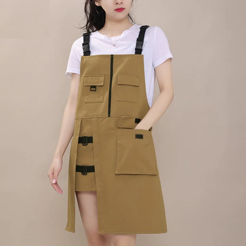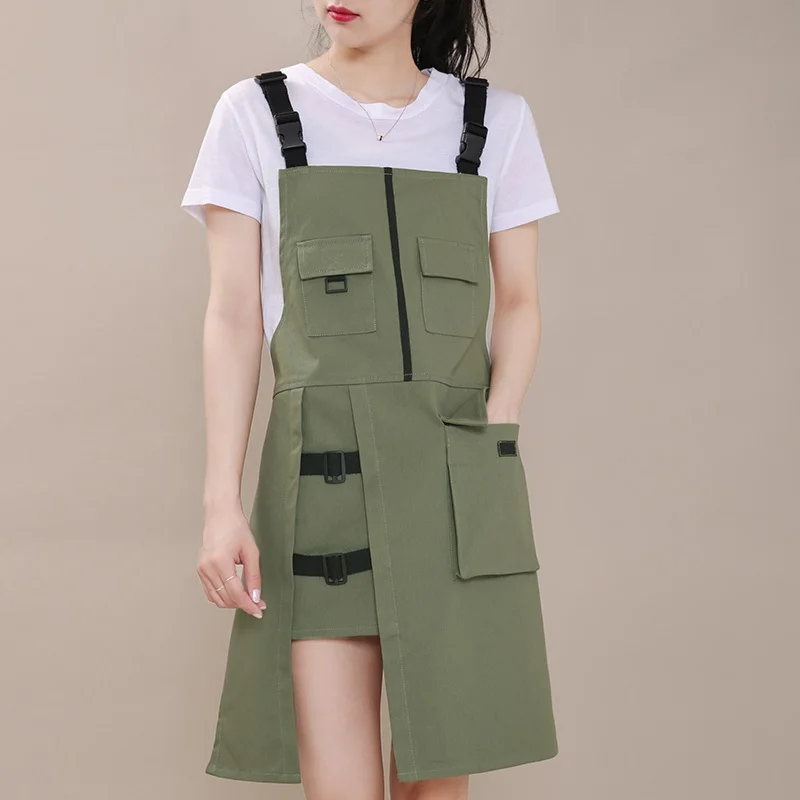 Фартук с большими карманами:Фартука обладает большими карманами нашитым на груди, который является практичным и подходит для различных профессиональных инструментов, таких как рецепты, термометры кухни, кухонные Таймеры, красящие ручки и парикмахерские инструменты. Фартук с эластичной резинкой декоративным поясом и металлической фурнитурой, которая очень модно и красиво.