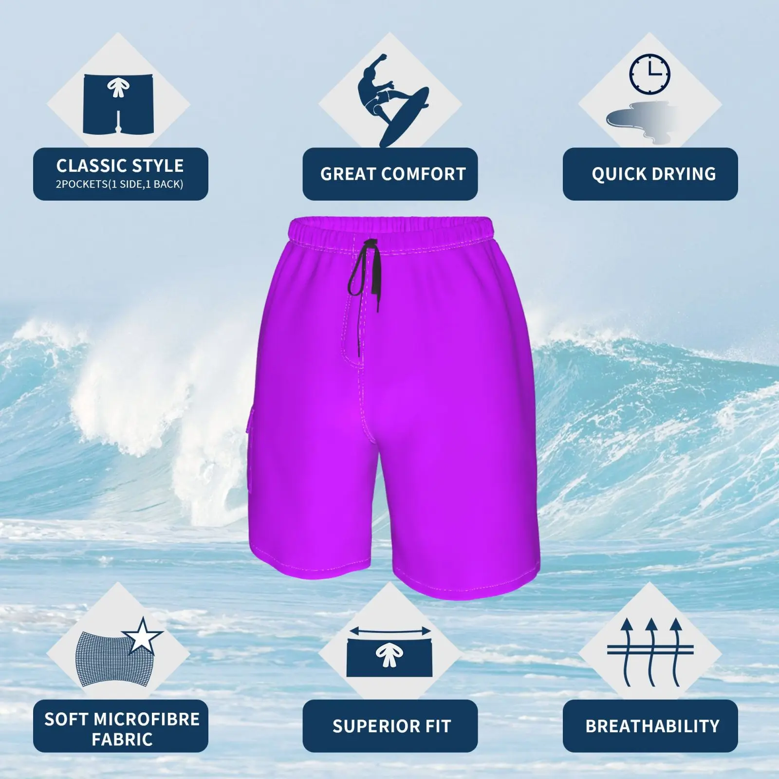 Отзывы о Неоновые фиолетовые пляжные шорты флуоресцентные яркие однотонные | Мужская