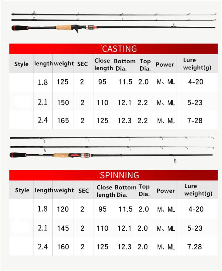 Один стержень сочетается с 2 наконечниками M и ML для удовлетворения потребностей различных рыболовных площадок, может использоваться разными способами с одной удочкой