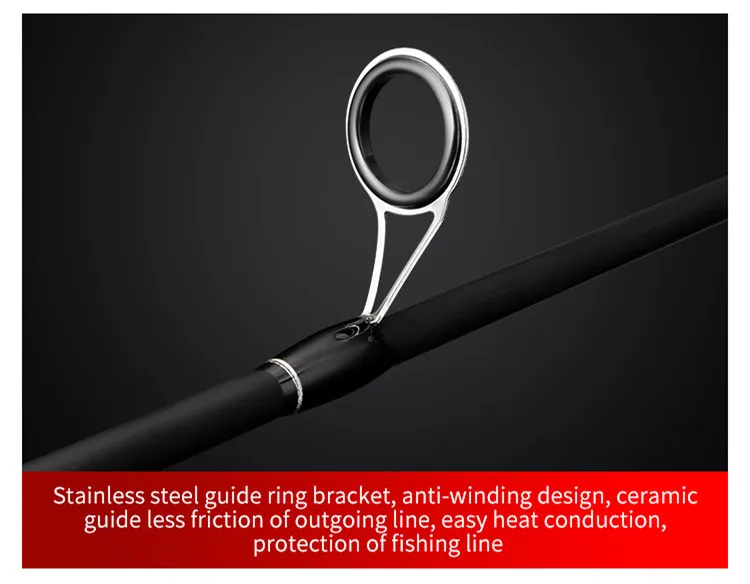 Передний винтовой порт усилен алюминиевым сплавом, чтобы избежать трения с корпусом удочки во время использования и повысить долговечность удочки