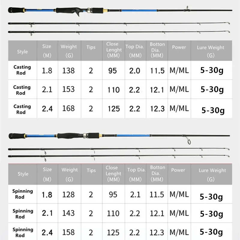 Высокое качество 2021 новинка 1,8 м 2,1 М 2,4 м спиннинговая Удочка 2 наконечника ML/m мощность 3 сек карбоновая удочка спиннинговая удочка рыболовные снасти